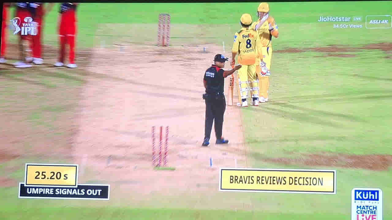 ఈ సంఘటన చెన్నై ఇన్నింగ్స్ 17వ ఓవర్లో జరిగింది. లుంగీ న్గిడి బౌలింగ్లో ఈ సంఘటన చోటు చేసుకుంది. ఆ ఓవర్లోని మూడో బంతికి అతను ఫుల్ టాస్ వేశాడు. అది నేరుగా వెళ్లి డెవాల్డ్ బ్రెవిస్ ప్యాడ్కు తగిలింది. ఆ తర్వాత బలమైన అప్పీల్ రావడంతో, అంపైర్ నితిన్ మీనన్ బ్రెవిస్ను అవుట్గా ప్రకటించాడు. అంపైర్ నిర్ణయం తీసుకునే సమయంలో బ్రెవిస్, జడేజా పరుగును పూర్తి చేస్తున్నారు. ఆ తర్వాత బ్రెవిస్ జడేజాతో చర్చించి DRS తీసుకోవాలని సిగ్నల్ ఇచ్చాడు. కానీ, అంపైర్ DRS తీసుకోవడానికి సమయం అంటే 15 సెకన్లు దాటిపోయిందని తెలిపాడు. కానీ ఈ సమయంలో, అభిమానులు, వ్యాఖ్యాతలు టైమర్ తెరపై చూపించకపోవడంతో ఆశ్చర్యపరిచారు.