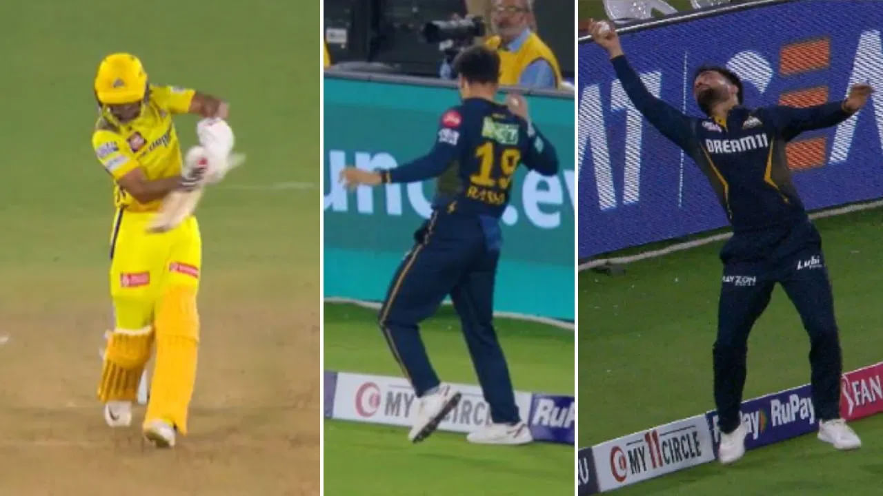 ఉమేశ్ యాదవ్ వేసిన ఇన్నింగ్స్ మూడో ఓవర్ ఐదో బంతికి సీఎస్కే కెప్టెన్ రుతురాజ్ భారీ షాట్కు ప్రయత్నించాడు. బంతి దాదాపు బౌండరీ లైన్ దాటినట్లే అనిపించింది. అయితే, ఈ సందర్భంగా రషీద్ బౌండరీ దగ్గరికి దూకి క్యాచ్ తీసుకున్నాడు. అయితే, ఈ సమయంలో అతను నియంత్రణ కోల్పోవడంతో బంతి చేతికి అందకుండా పోయింది.