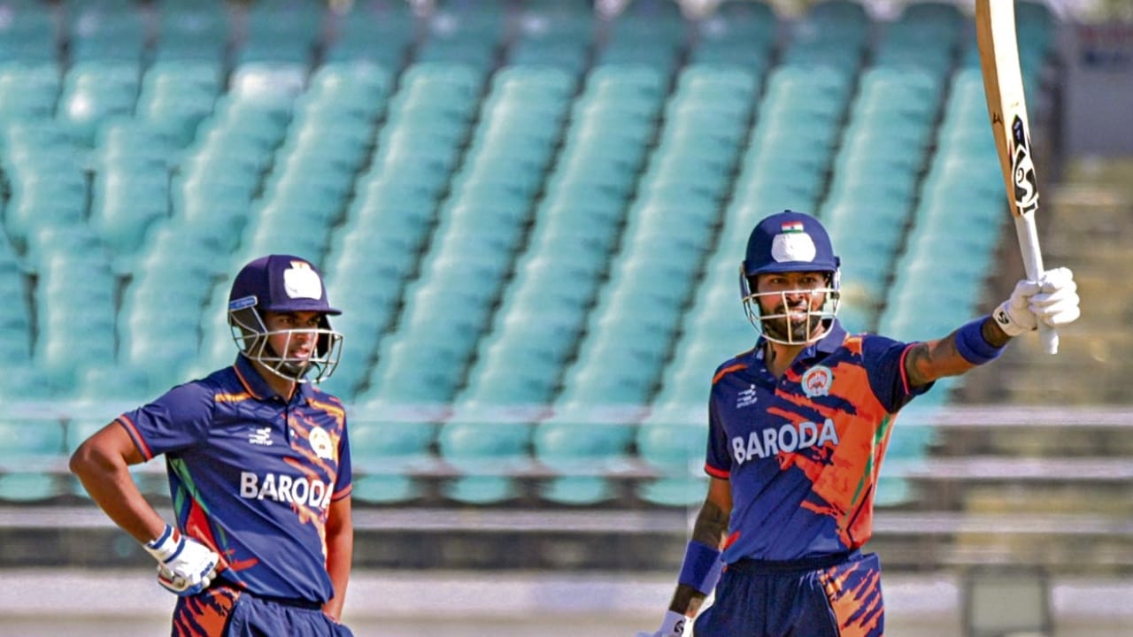 టాస్ గెలిచిన బరోడా జట్టుకు ఆరంభంలోనే గట్టి ఎదురుదెబ్బలు తగిలాయి. కేవలం 11 పరుగులకే 2 కీలక వికెట్లు కోల్పోయి జట్టు కష్టాల్లో పడింది. ఆ సమయంలో క్రీజులోకి వచ్చిన ప్రియాన్షు మోలియాతో కలిసి పాండ్యా ఇన్నింగ్స్ను చక్కదిద్దాడు. 6వ నంబర్ బ్యాటర్గా బరిలోకి దిగిన హార్దిక్, మొదట్లో కాస్త నిదానంగా ఆడినా, కుదురుకున్నాక మాత్రం బౌలర్లపై విరుచుకుపడ్డాడు. కేవలం 19 బంతుల్లోనే తన అర్ధ సెంచరీని పూర్తి చేసుకున్నాడు.