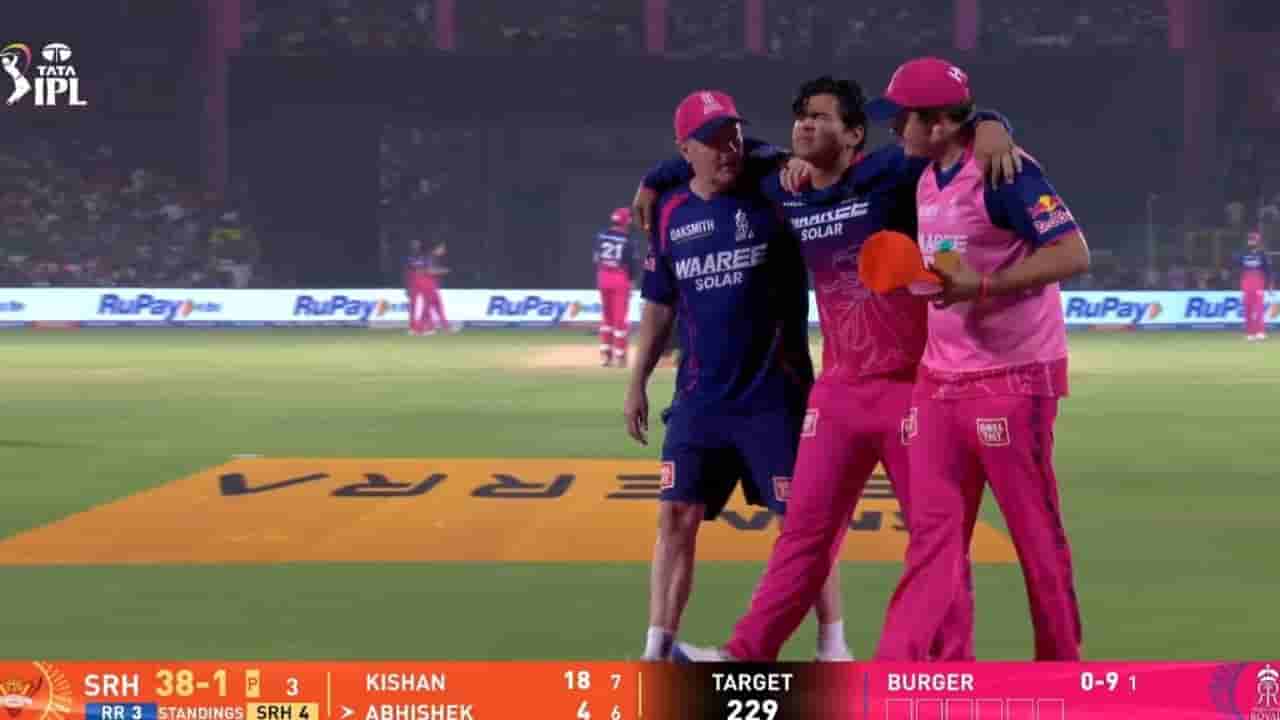 హైదరాబాద్ ఇన్నింగ్స్ సమయంలో మూడో ఓవర్లో ఈ విషాదకర సంఘటన చోటు చేసుకుంది. జోఫ్రా ఆర్చర్ వేసిన ఓవర్ పిచ్ బంతిని ఇషాన్ కిషన్ కవర్స్ దిశగా భారీ షాట్ ఆడాడు. ఆ బంతిని అడ్డుకోవడానికి సర్కిల్ లోపల ఉన్న వైభవ్ సూర్యవంశీ వెనక్కి పరిగెత్తాడు. అయితే బంతిని వెంబడిస్తున్న క్రమంలో ఒక్కసారిగా అతనికి హామ్స్ట్రింగ్ పట్టేసింది. వెంటనే నడవలేక మైదానంలోనే కూలబడిపోయాడు.