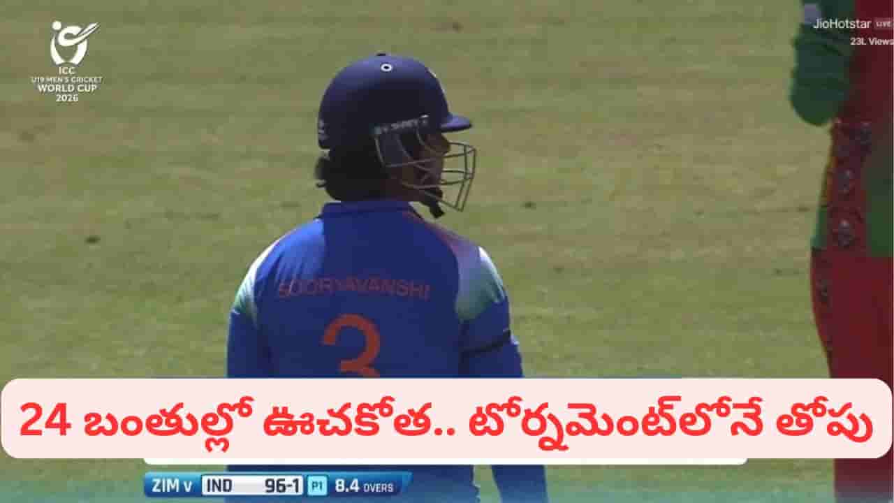 Vaibhav Suryavanshi Fastest Half Century: భారత యువ సంచలనం వైభవ్ సూర్యవంశీ ఆకాశమే హద్దుగా చెలరేగిపోయాడు. అండర్-19 ప్రపంచ కప్ 2026 సూపర్ సిక్స్ లో భాగంగా జింబాబ్వే జరుగుతూన్న మ్యాచ్ లో బౌలర్లను ముప్పుతిప్పలు పెడుతూ కేవలం 24 బంతుల్లోనే అర్ధ సెంచరీ పూర్తి చేసి సంచలనం సృష్టించాడు. ఈ అద్భుతమైన ఇన్నింగ్స్లో అతను 4 సిక్సర్లు, 4 ఫోర్లు బాదాడు. అండర్-19 ప్రపంచ కప్లో ఇది మూడవ వేగవంతమైన అర్ధ సెంచరీగా నిలిచింది.