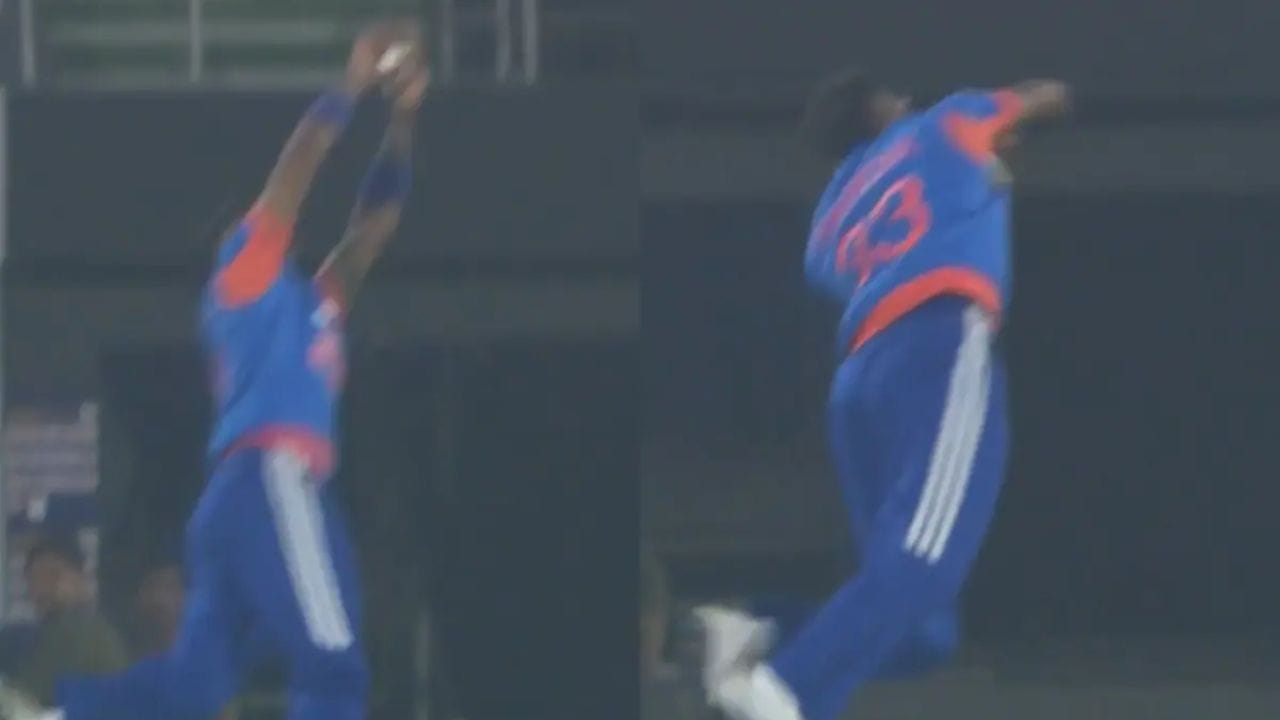 ఆ క్షణంలో బంతి హార్దిక్ మీదుగా వెళ్తుందనిపించింది. కానీ, అతను సరైన సమయంలో గాలిలోకి ఎగిరి అద్భుతమైన క్యాచ్ను అందుకున్నాడు. తన ఎడమ వైపునకు రెండు అడుగులు వేసి, అద్భుతమైన జంప్తో క్యాచ్ను పూర్తి చేశాడు.