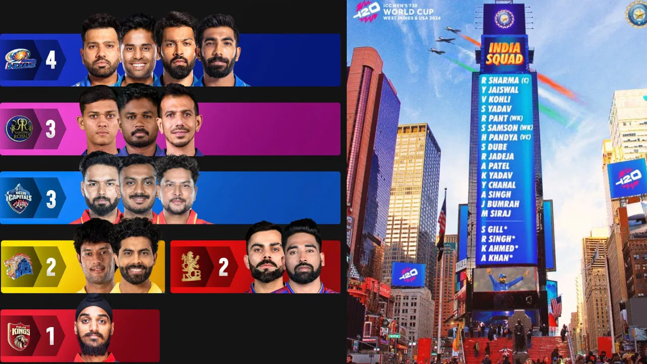 ముంబైతో పాటు, రాజస్థాన్ రాయల్స్, ఢిల్లీ క్యాపిటల్స్ నుంచి ముగ్గురు ఆటగాళ్లు T20 ప్రపంచ కప్ కోసం భారత జట్టులో ఎంపికయ్యారు. రాజస్థాన్ కెప్టెన్ సంజూ శాంసన్ భారత జట్టులో వికెట్ కీపర్ బ్యాట్స్మెన్గా ఎంపికయ్యాడు. యశస్వి జైస్వాల్ ఓపెనింగ్ బ్యాట్స్మెన్గా, యుజ్వేంద్ర చాహల్ స్పిన్ విభాగంలో ఉన్నాడు. ఢిల్లీ క్యాపిటల్స్ నుంచి కెప్టెన్ రిషబ్ పంత్తో పాటు అక్షర్ పటేల్, కుల్దీప్ యాదవ్ కూడా టీమ్ ఇండియాలోకి ఎంట్రీ ఇచ్చారు.