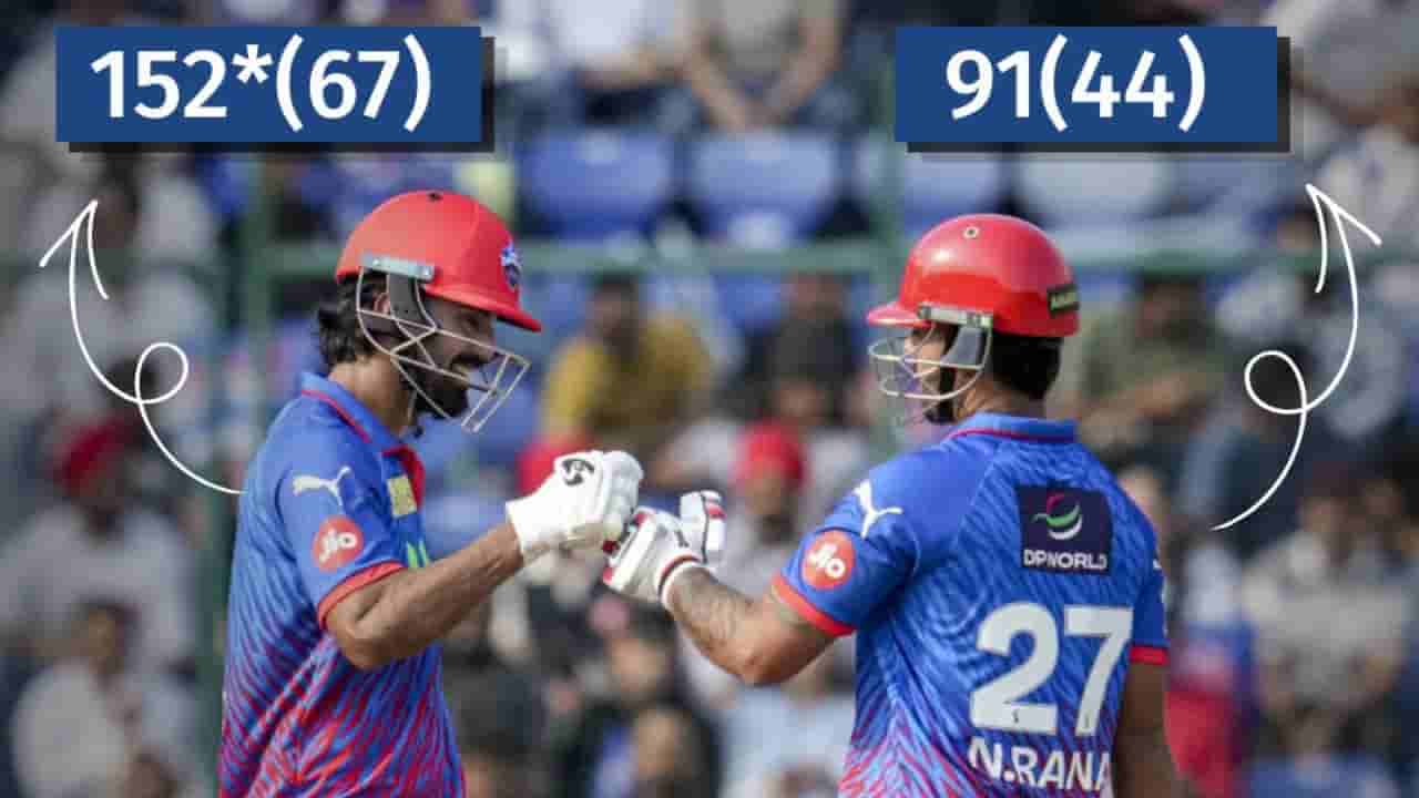 KL Rahul Nitish Rana Partnership Record: ఢిల్లీ వేదికగా పంజాబ్ కింగ్స్ తో జరిగిన ఈ మ్యాచ్లో టాస్ గెలిచిన ఢిల్లీకి ఆరంభంలోనే షాక్ తగిలింది. ఓపెనర్ నిశ్శంక కేవలం 11 పరుగులకే వెనుదిరిగినప్పటికీ, ఆ తర్వాత క్రీజులోకి వచ్చిన నితీష్ రాణాతో కలిసి కేఎల్ రాహుల్ ఇన్నింగ్స్ను మలుపు తిప్పారు. వీరిద్దరూ రెండో వికెట్కు ఏకంగా 204 పరుగుల భారీ భాగస్వామ్యాన్ని నెలకొల్పారు. ఐపీఎల్ చరిత్రలో అత్యధిక భాగస్వామ్యాల జాబితాలో ఇది ఆరో స్థానంలో నిలిచింది. పవర్ప్లేలో 68 పరుగులు చేసిన ఈ జోడీ, ఆ తర్వాత కేవలం 9 ఓవర్లలోనే 189 పరుగులు పిండుకోవడం గమనార్హం.