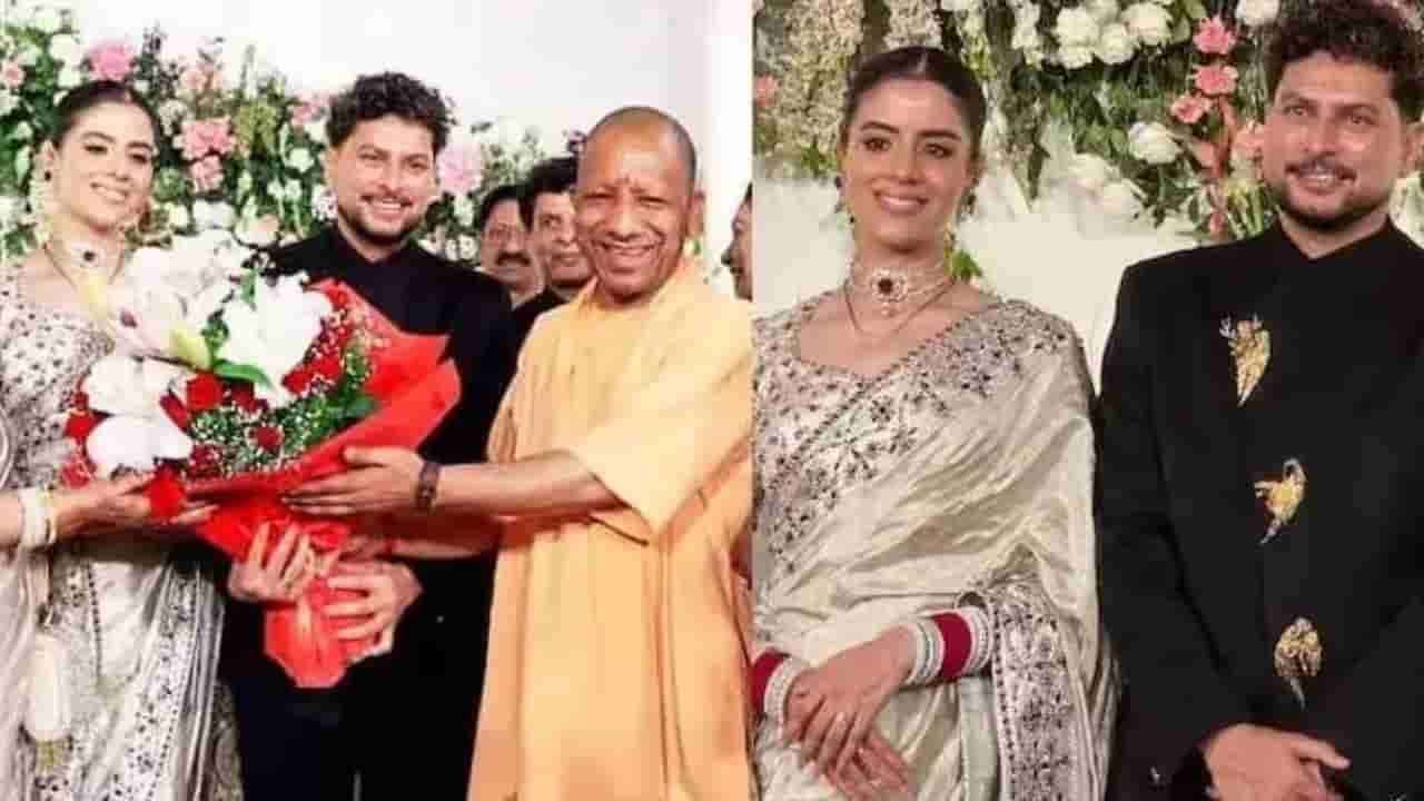 Kuldeep Yadav Wedding Reception : టీమిండియా స్టార్ స్పిన్నర్ కుల్దీప్ యాదవ్ తన జీవితంలో సరికొత్త ఇన్నింగ్స్ను ప్రారంభించారు. తన చిరకాల స్నేహితురాలు వంశికా చద్దాతో కలిసి మార్చి 14న ఏడడుగులు వేశారు. పెళ్లి జరిగిన మూడు రోజుల తర్వాత, అంటే మార్చి 17న లక్నోలోని అత్యంత విలాసవంతమైన సెంట్రమ్ హోటల్లో ఘనంగా వెడ్డింగ్ రిసెప్షన్ నిర్వహించారు. ఈ వేడుకకు క్రికెట్ దిగ్గజాలతో పాటు రాజకీయ ప్రముఖులు కూడా భారీగా తరలివచ్చారు. ముఖ్యంగా ఉత్తరప్రదేశ్ ముఖ్యమంత్రి యోగి ఆదిత్యనాథ్ స్వయంగా విచ్చేసి నూతన వధూవరులను ఆశీర్వదించడం విశేషం. క్రికెట్ లోకం నుంచి గౌతమ్ గంభీర్, యశస్వి జైస్వాల్, శిఖర్ ధావన్ వంటి స్టార్లు ఈ వేడుకలో తళుక్కున మెరిశారు.