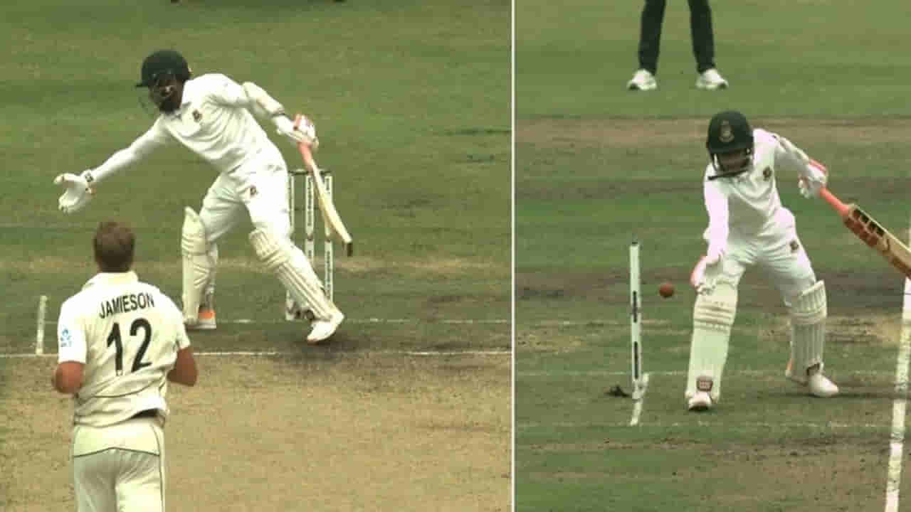 వివరాల్లోకి వెళితే.. ఈ టెస్ట్ మ్యాచ్లో టాస్ గెలిచిన బంగ్లాదేశ్ ముందుగా బ్యాటింగ్ ఎంచుకుంది. తదనుగుణంగా ఇన్నింగ్స్ ప్రారంభించిన బంగ్లాదేశ్ హసన్ జాయ్ (14), జకీర్ హసన్ (8) త్వరగానే వికెట్లను కోల్పోయింది. కెప్టెన్ నజ్ముల్ హొస్సేన్ శాంటో (5), మొయినుల్ హక్ (5) క్రీజులో నిలవలేకపోయారు. ఈ దశలో కలిసి వచ్చిన ముష్ఫికర్ రహీమ్, షహదత్ హొస్సేన్ వికెట్ల పతనానికి అడ్డుకట్ట వేశారు. ఐదో వికెట్కు 57 పరుగుల భాగస్వామ్యం అందించారు. అయితే మ్యాచ్ 41వ ఓవర్ 4వ బంతికి ఒక చిన్న తప్పిదం కారణంగా ముష్ఫికర్ రహీమ్ అవుటయ్యాడు. కైల్ జేమీసన్ వేసిన బంతిని ముష్ఫికర్ డిఫెన్స్ ఆడాడు. బంతి బ్యాట్కు తగిలి వికెట్ల వైపుకు దూసుకెళ్లుతుందేమోనని బంగ్లాదేశ్ బ్యాటర్ దానిని చేతితో ఆపాడు. దీంతో న్యూజిలాండ్ ఆటగాళ్లు ఫీల్డ్ అంపైర్కు అప్పీల్ చేశారు. ఈ అప్పీల్ను మన్నించిన అంపైర్, చర్చించి మళ్లీ పరీక్ష కోసం థర్డ్ అంపైర్కు విజ్ఞప్తి చేశారు.