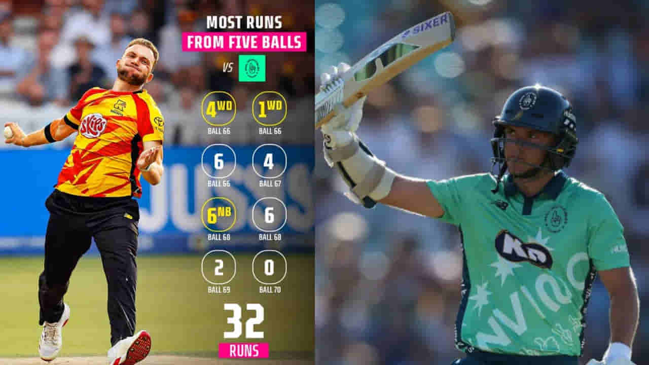 ఇది మాత్రమే కాదు, సామ్ కుక్ ది హండ్రెడ్ లీగ్ చరిత్రలో అత్యంత ఖరీదైన ఓవర్ బౌలింగ్ చేసి అనవసరమైన రికార్డును కూడా సృష్టించాడు. సామ్ కుక్ బౌలింగ్ చేయడానికి వచ్చినప్పుడు, నీతా అంబానీ యాజమాన్యంలోని ఓవల్ ఇన్విన్సిబుల్స్ గెలవడానికి 35 బంతుల్లో 83 పరుగులు అవసరం. కానీ సామ్ కుక్ తన ట్రెట్ రాకెట్స్ను విజయానికి దూరంగా ఉంచడానికి కేవలం 5 బంతుల్లో 32 పరుగులు ఇచ్చాడు.
