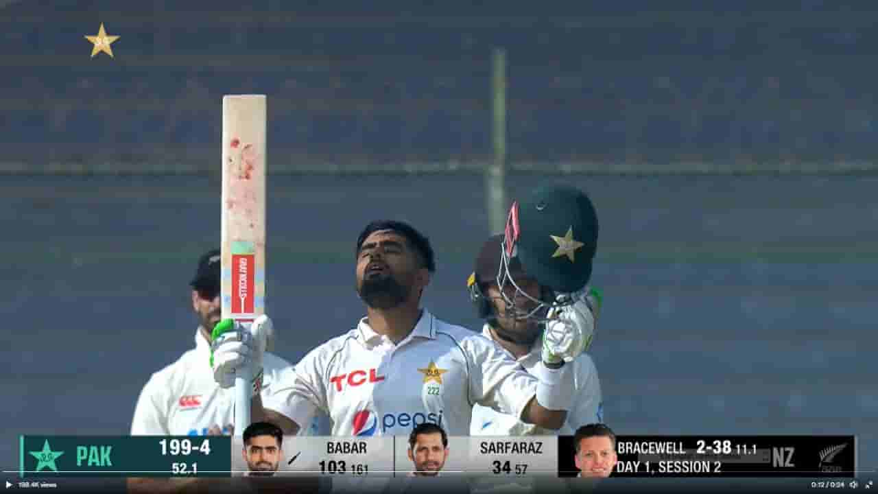 Babar Azam NZ vs PAK: పాకిస్థాన్, న్యూజిలాండ్ జట్ల మధ్య రెండు టెస్టు మ్యాచ్ల సిరీస్లో భాగంగా తొలి మ్యాచ్ కరాచీ వేదికగా ప్రారంభమైంది. ఈ మ్యాచ్లో తొలి రోజునే పాక్ కెప్టెన్ బాబర్ ఆజం కనిపించాడు. బాబర్ అద్భుతంగా బ్యాటింగ్ చేస్తూనే సెంచరీ పూర్తి చేసుకున్నాడు. బాబర్ 155 బంతుల్లో 10 ఫోర్లు, ఒక సిక్స్తో సెంచరీ పూర్తి చేశాడు. ఇది బాబర్ అజామ్కు 9వ టెస్టు సెంచరీ.