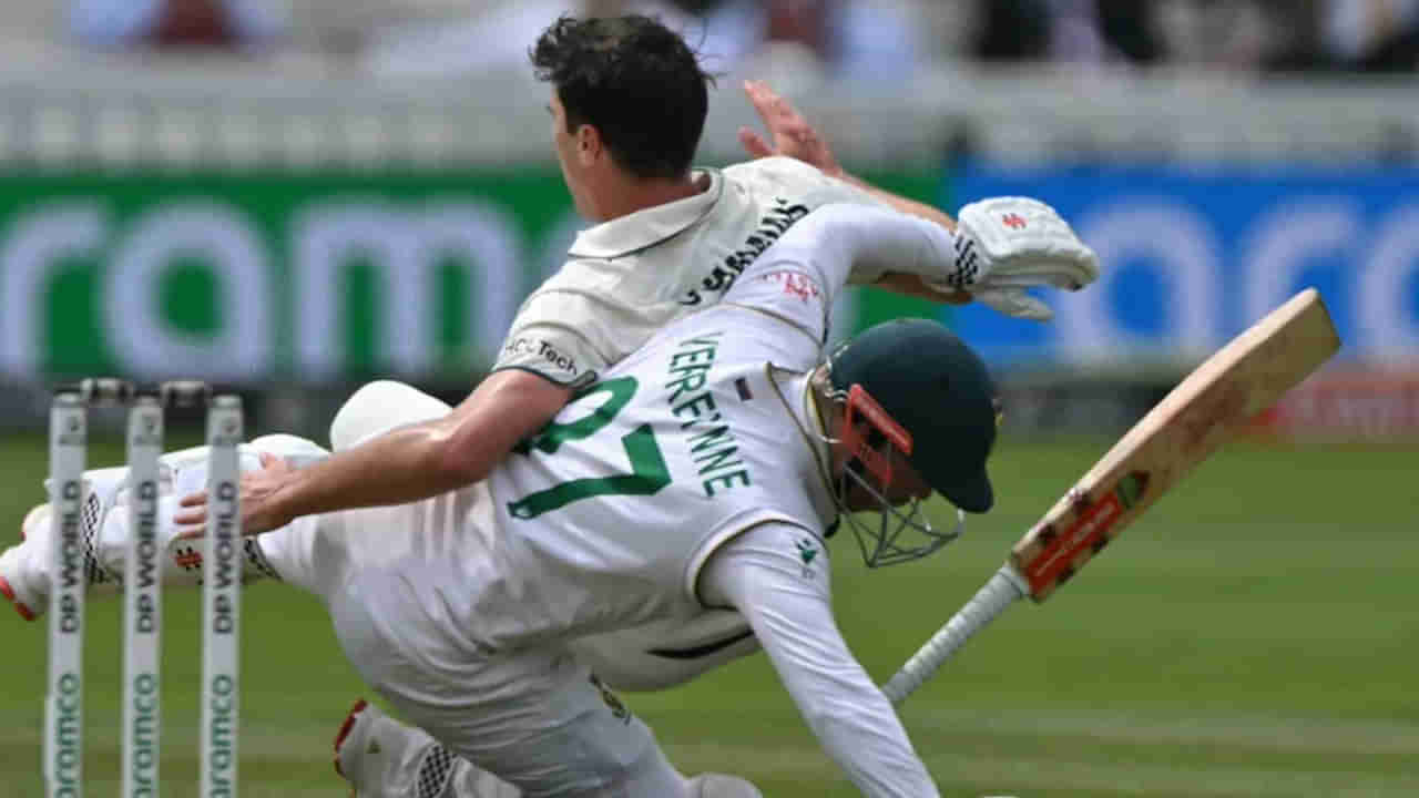 డబ్ల్యూటీసీ ఫైనల్ రెండో రోజు ఆటలో ఈ సంఘటన చోటుచేసుకుంది. దక్షిణాఫ్రికా బ్యాట్స్మెన్ కైల్ వెర్రీన్ క్రీజులో ఉన్నాడు. పాట్ కమిన్స్ బౌలింగ్ వేయగా, బంతి వెర్రీన్ ప్యాడ్లను తాకింది. ఆస్ట్రేలియా ఆటగాళ్లు ఎల్బీడబ్ల్యూ కోసం అప్పీల్ చేశారు. అదే సమయంలో, వెర్రీన్ సింగిల్ తీయడానికి పరుగు పెట్టాడు. కమిన్స్ బంతిని అప్పీల్ చేస్తూ వెనక్కి తిరగగా, వెర్రీన్ కూడా అదే దిశలో పరుగెత్తుతూ, ఇద్దరూ అనుకోకుండా ఢీకొన్నారు. ఇద్దరూ కొద్దిసేపు కిందపడిపోయారు.