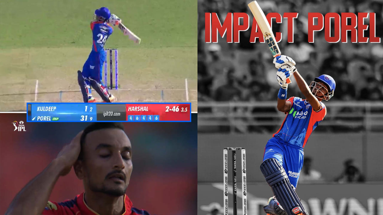 హర్షల్ వేసిన ఐదో బంతికి పోరెల్ స్క్వేర్ లెగ్ బౌండరీపై సిక్సర్ కొట్టాడు. చివరి బంతికి రెండు పరుగులు చేసే ప్రయత్నంలో కుల్దీప్ రనౌట్ అయ్యాడు. ఈ విధంగా పోరెల్ చివరి 6 బంతుల్లో 25 పరుగులు చేసి ఇంపాక్ట్ ప్లేయర్గా తనదైన ముద్ర వేయడంతో ఢిల్లీ 174 పరుగులు చేసింది. అభిషేక్ 10 బంతుల్లో 32 పరుగులతో నాటౌట్గా నిలిచాడు.