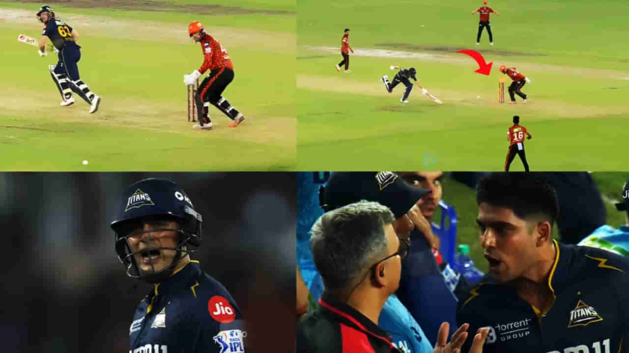 కానీ, 13వ ఓవర్ చివరి బంతికి పరుగు తీసే ప్రయత్నంలో శుభ్మాన్ గిల్ రనౌట్ అయ్యాడు. ఇంతలో, SRH ఆటగాళ్ళు అప్పీల్ చేయడంతో, ఫీల్డ్ అంపైర్ రివ్యూ చేశాడు. టీవీ అంపైర్ వీడియోను సమీక్షించి, ఆ సమయంలో గిల్ బ్యాట్ క్రీజు వెలుపల ఉందని కనుగొన్నాడు. అదే సమయంలో, వికెట్ కీపర్ గ్లోవ్ కూడా వికెట్ను తాకింది.