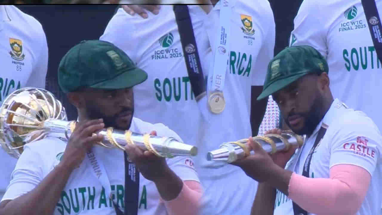 టెంబా బావుమా WTC మేస్తో సెలబ్రేట్ చేసుకున్న వీడియో క్షణాల్లో సోషల్ మీడియాలో వైరల్ అయ్యింది. అభిమానులు తమ ఆనందాన్ని వ్యక్తం చేస్తూ, బావుమాను “లార్డ్ బావుమా” అని కీర్తిస్తూ, దక్షిణాఫ్రికాకు ఈ విజయం ఎంత ముఖ్యమో తెలియజేస్తూ ట్వీట్లు, పోస్టులు చేశారు. “చోకర్స్” అనే ట్యాగ్ను తుడిచిపెట్టి, దక్షిణాఫ్రికా క్రికెట్కు ఒక కొత్త అధ్యాయాన్ని లిఖించిన బావుమా, కేవలం తన బ్యాటింగ్తోనే కాకుండా, తన ఉద్వేగభరితమైన సెలబ్రేషన్తోనూ అభిమానుల మనసుల్లో నిలిచిపోయాడు.