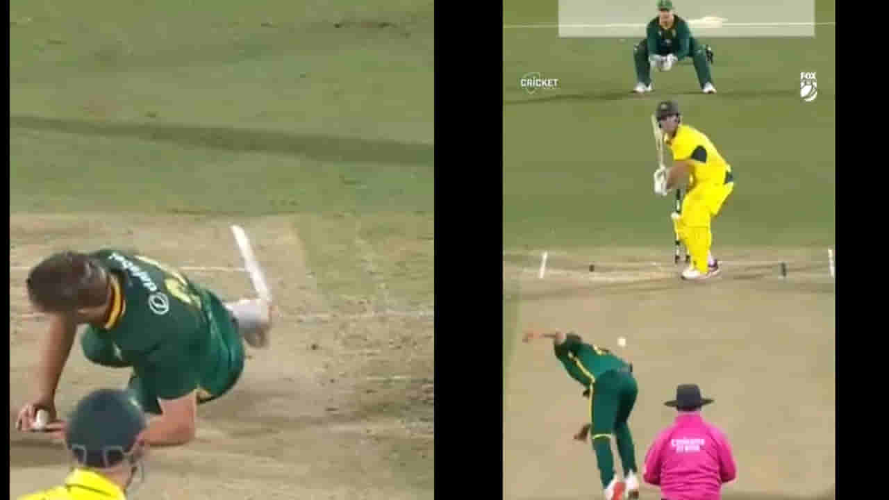 Wiaan Mulder Slips Video: క్రికెట్ మ్యాచ్లో ఫాస్ట్ బౌలర్లు బౌలింగ్ చేస్తూ పడిపోవడం తరచుగా కనిపిస్తుంది. కొందరు బౌలింగ్ చేస్తూ పడిపోతారు. కొందరు ఆ తర్వాత జారిపోతారు. మరికొందరు అంతకు ముందే పడిపోతారు. కొన్నిసార్లు అది పెద్ద ప్రమాదంగా మారుతుంది. బౌలర్ మైదానం వదిలి వెళ్లిన సందర్భాలు కూడా చాలానే ఉన్నాయి. కానీ కొంతమంది బౌలర్లు ఈ విషయంలో కొంచెం అదృష్టవంతులు. ఇందులో ఒక పేరు దక్షిణాఫ్రికా ఆల్ రౌండర్ వియాన్ ముల్డర్. అతను ఆస్ట్రేలియాతో జరిగిన మ్యాచ్లో తన ఓవర్ను ప్రారంభించేటప్పుడు జారి పడిపోయాడు. కానీ ఆ తర్వాత అతను బలమైన పునరాగమనం చేసి వికెట్ దక్కించుకోవడం గమనార్హం.