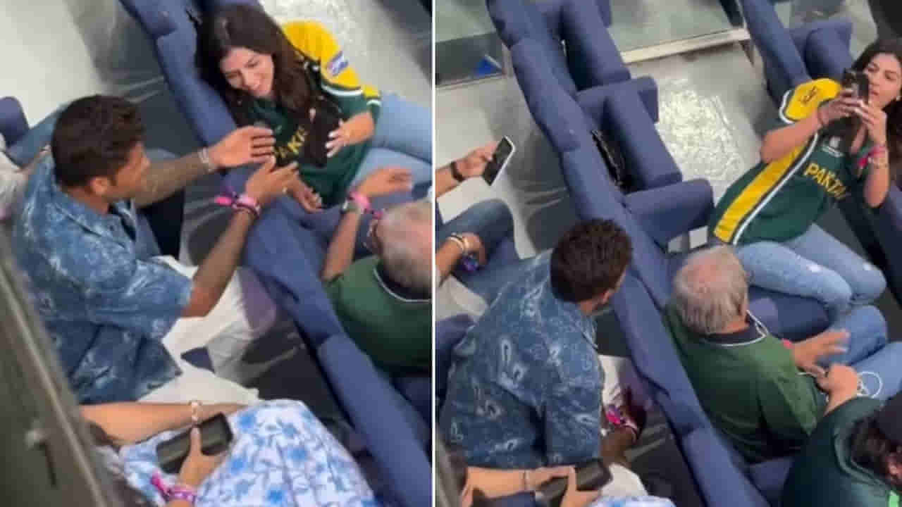 అలాగే టాలీవుడ్ నుంచి మెగాస్టార్ చిరంజీవి, డైరెక్టర్ సుకుమార్ హాజరయ్యారు. వీరితో పాటు తెలుగుదేశం పార్టీ నేత, మంత్రి నారా లోకేష్ ఇండియా పాకిస్థాన్ మ్యాచ్ చూసేందుకు వచ్చారు. ఇక టీమిండియా క్రికెటర్ల నుంచి సూర్యకుమార్ యాదవ్ తన భార్యతో కలిసి వచ్చి ఈ మ్యాచ్ను ఎంజాయ్ చేశాడు. కాగా సూర్యకుమార్ యాదవ్ కూర్చున్న వీవీఐపీ గ్యాలరీలో పాకిస్థాన్ సపోర్ట్స్ కూడా కూర్చున్నారు. అందులో ఓ అందమైన అమ్మాయి సూర్య కుమార్ యాదవ్ ముందు వరుసలో కూర్చుంది. ఆమె పక్కన ఇంకో పాకిస్థానీ సపోర్ట్ కూర్చున్నారు. బహుషా అతను ఆ అమ్మాయికి సంబంధించిన వ్యక్తి అయి ఉంటారు.