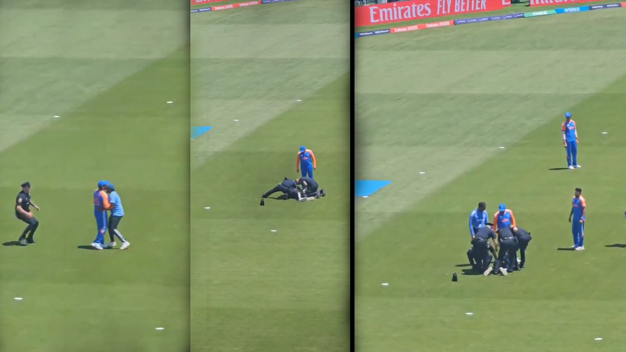 The fan who breached the field and hugged Rohit Sharma was taken down by the USA police.