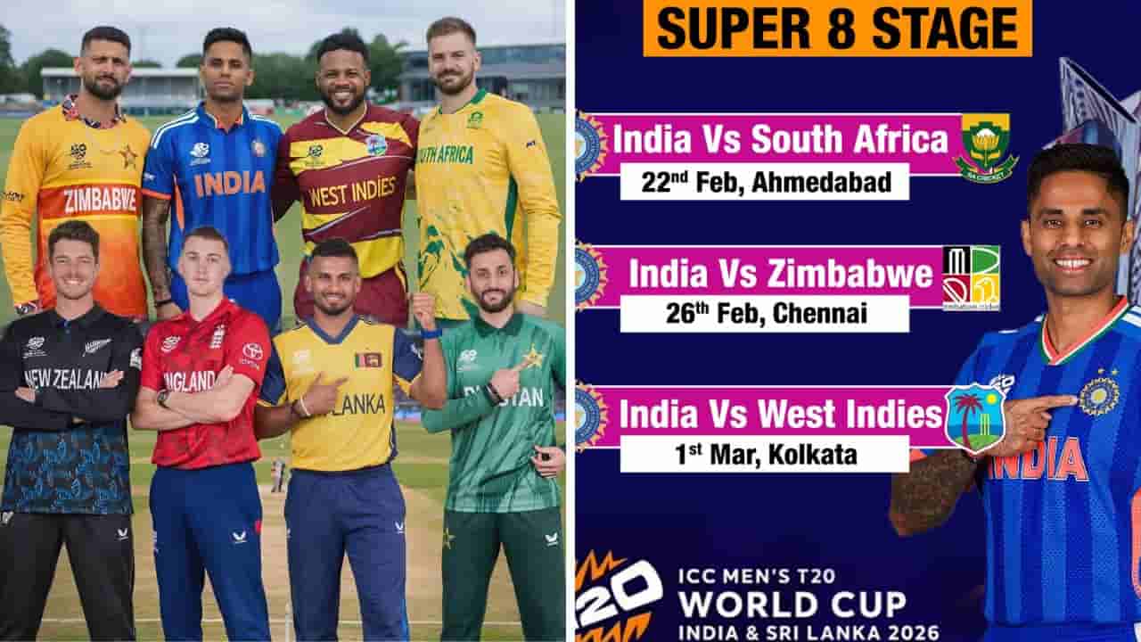 T20 World Cup Super 8 Schedule: టీ20 వరల్డ్ కప్ 2026లో సూపర్-8 దశకు అర్హత సాధించిన జట్ల జాబితా పూర్తిగా వెల్లడైంది. గ్రూప్-Aలో పాకిస్తాన్ చివరి మ్యాచ్లో నమీబియాను ఓడించిన తర్వాత సూపర్-8 లైనప్ ను ఖరారు చేసుకుంది. గ్రూప్-A నుంచి డిఫెండింగ్ చాంపియన్స్ అయిన భారత్, పాకిస్తాన్ అర్హత సాధించగా, గ్రూప్-B నుంచి శ్రీలంక, జింబాబ్వే అర్హత సాధించాయి. అలాగే, గ్రూప్-C నుంచి వెస్టిండీస్, ఇంగ్లాండ్ టాప్ టీమ్లుగా నిలిచాయి. గ్రూప్-D నుంచి దక్షిణాఫ్రికా, న్యూజిలాండ్ సూపర్-8కు చేరాయి. ముందుగానే అంచాన వేసినట్లే సూపర్ 8 చేరిన టీంలలో ఒక్క ఆస్ట్రేలియా జట్టు మాత్రమే లేదు. ఆ స్థానంలో జింబాబ్వే చేరింది. కాగా, ప్రస్తుతం అందరిచూపు ఈ జట్టుపైనే నిలిచింది. సూపర్ 8లో ఏ జట్టుకు షాక్ ఇవ్వనుందోనని మాట్లాడుకుంటున్నారు.