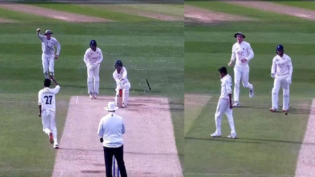 కెంట్ తరపున తొలిసారి ఆడుతున్న యుజువేంద్ర చాహల్ ఈ మ్యాచ్లో మొత్తం 29 ఓవర్లు బౌలింగ్ చేశాడు. 10 మెయిడిన్ ఓవర్లు వేసిన చాహల్ తన స్పెల్లో 63 పరుగులు ఇచ్చి ముగ్గురు బ్యాట్స్మెన్లను పెవిలియన్కు చేర్చాడు. లిండన్ జేమ్స్ క్లీన్ బౌల్డ్ అయిన వీడియో ప్రస్తుతం వైరల్గా మారింది.