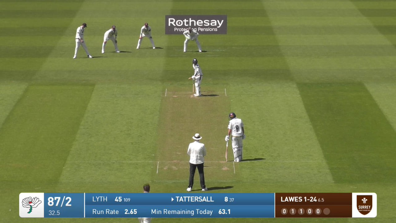 ఇన్నింగ్స్ మొత్తంగా చూస్తే, యార్క్షైర్ తొలి ఇన్నింగ్స్లో 255 పరుగులకు ఆలౌట్ అయింది. జానీ బెయిర్స్టో 114 బంతుల్లో 89 పరుగులతో చక్కటి ఇన్నింగ్స్ ఆడాడు. అతనికి ఆడమ్ లిత్, జోర్డాన్ థాంప్సన్ కొంత మద్దతు ఇచ్చారు. సర్రే బౌలింగ్లో టామ్ లాస్, జోర్డాన్ క్లార్క్ తలా మూడు వికెట్లు తీసారు. డాన్ లారెన్స్ రెండు వికెట్లు తీసి సహకరించాడు.
