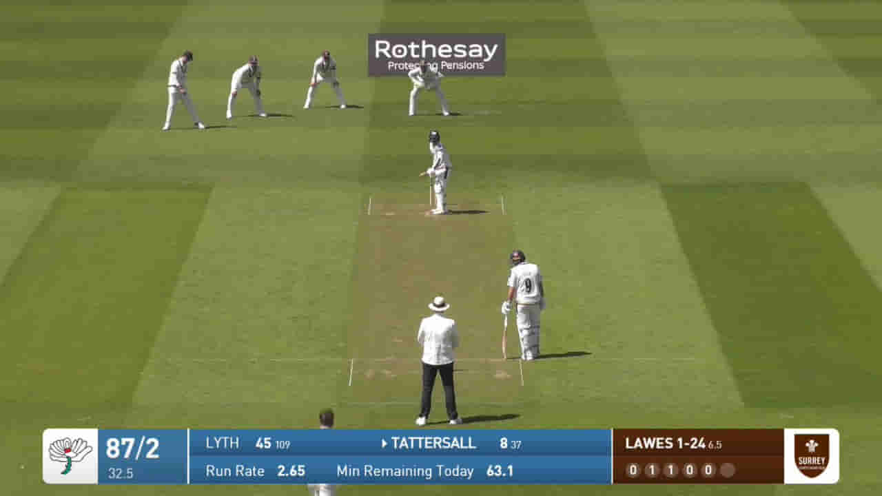 ఇన్నింగ్స్ మొత్తంగా చూస్తే, యార్క్షైర్ తొలి ఇన్నింగ్స్లో 255 పరుగులకు ఆలౌట్ అయింది. జానీ బెయిర్స్టో 114 బంతుల్లో 89 పరుగులతో చక్కటి ఇన్నింగ్స్ ఆడాడు. అతనికి ఆడమ్ లిత్, జోర్డాన్ థాంప్సన్ కొంత మద్దతు ఇచ్చారు. సర్రే బౌలింగ్లో టామ్ లాస్, జోర్డాన్ క్లార్క్ తలా మూడు వికెట్లు తీసారు. డాన్ లారెన్స్ రెండు వికెట్లు తీసి సహకరించాడు.