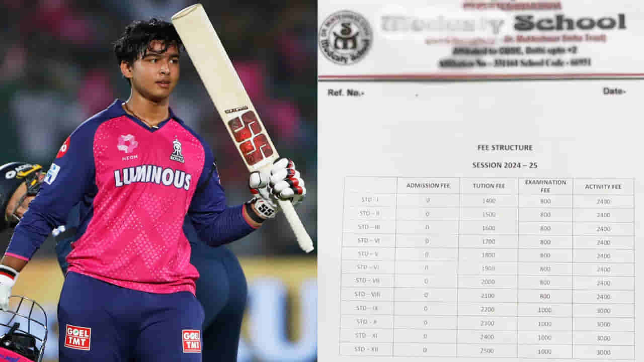 ఆ తర్వాత తన మూడవ మ్యాచ్లో సెంచరీ సాధించాడు. గుజరాత్ టైటాన్స్పై 35 బంతుల్లో సెంచరీ చేశాడు. ఐపీఎల్ చరిత్రలోనే ఫాస్టెస్ట్ సెంచరీ చేసిన ఇండియన్ ప్లేయర్గా కొత్త చరిత్ర లిఖించాడు. తాజాగా ఆదివారం పంజాబ్ కింగ్స్తో జరిగిన మ్యాచ్లోనూ కేవలం 15 బంతుల్లోనే 4 ఫోర్లు, 4 సిక్సులతో 40 పరుగులు చేసి అదరగొట్టాడు. అయితే.. ఐపీఎల్లో దుమ్ములేపుతున్న ఈ కుర్రాడు ప్రస్తుతం 8వ తరగతి చదువుతున్నాడని తెలిసి అంతా షాక్ అయ్యారు. ఇంతకీ వైభవ్ సూర్యవన్షీ ఏ స్కూల్లో చదువుతున్నాడు? ఎంత ఫీజ్ కడుతున్నాడు? అనే ఇంట్రెస్టింగ్ విషయాలను ఇప్పుడు తెలుసుకుందాం.. వైభవ్ బీహార్లోని సమస్తిపూర్ జిల్లాలోని తాజ్పూర్ అనే చిన్న గ్రామంలోని డాక్టర్ ముక్తేశ్వర్ సిన్హా మోడెస్టీ స్కూల్లో 8వ తరగతి చదువుతున్నాడు.