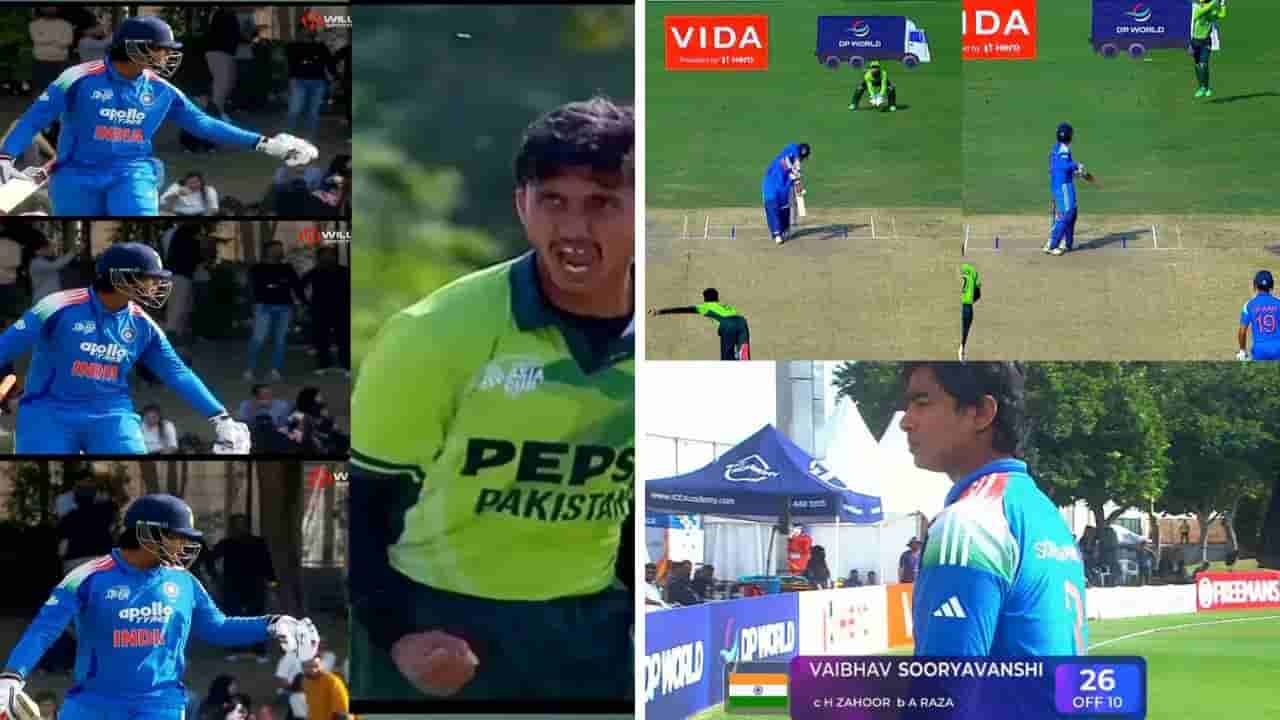 వైభవ్ అవుటైన వెంటనే అలీ రజా అతడికి చాలా కోపంగా ‘సెండ్ ఆఫ్’ ఇచ్చాడు. క్రీజు వదిలి వెళ్తున్న వైభవ్ను ఉద్దేశించి రజా ఏదో వ్యాఖ్యలు చేశాడు. సాధారణంగా సైలెంట్గా ఉండే వైభవ్, ఈసారి వెనక్కి తగ్గలేదు. పాక్ ఆటగాళ్లతో వాగ్వాదానికి దిగాడు. ఆ సమయంలో వైభవ్ తన షూ వైపు వేలు చూపిస్తూ (షూ కింద ఉంటారు అన్నట్లుగా) సైగలు చేస్తూ కౌంటర్ ఇచ్చాడు. ఈ ఘటనకు సంబంధించిన వీడియో నెట్టింట వైరల్ అవుతోంది.