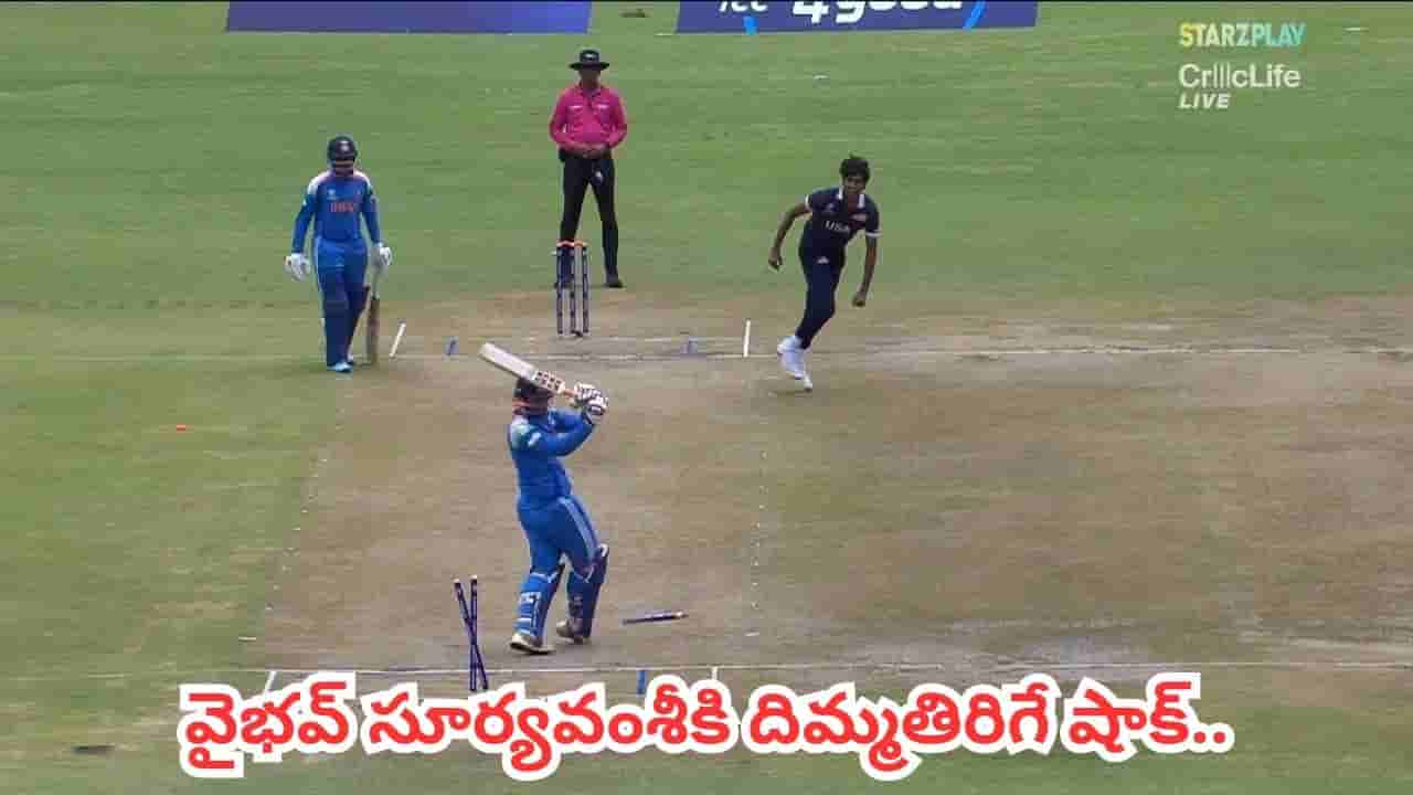 Vaibhav Suryavanshi: జింబాబ్వేలోని బులవాయో వేదికగా జరిగిన ఐసీసీ అండర్-19 ప్రపంచకప్ 2026 మొదటి మ్యాచ్లో భారత్ వర్సెస్ అమెరికా జట్లు తలపడ్డాయి. మొదట బ్యాటింగ్ చేసిన అమెరికాను భారత బౌలర్లు 107 పరుగులకే కుప్పకూల్చారు. స్వల్ప లక్ష్యంతో బరిలోకి దిగిన భారత్కు ఆరంభంలోనే గట్టి షాక్ తగిలింది. అందరూ ఎంతో ఆశగా ఎదురుచూసిన యువ సంచలనం వైభవ్ సూర్యవంశీ కేవలం 2 పరుగులకే అవుట్ అయ్యాడు.