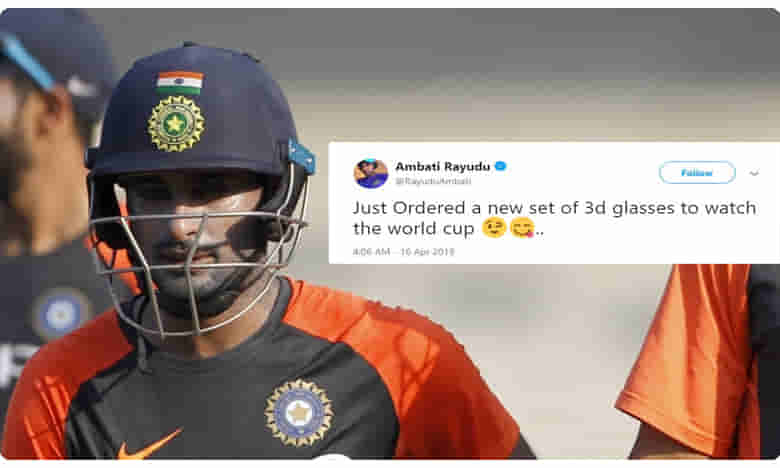 ప్రపంచకప్లో తనకు చోటు దక్కకపోవడంతో రాయుడు సోషల్ మీడియా వేదికగా ఆగ్రహం వ్యక్తం చేశాడు. ‘‘ప్రపంచకప్ చూసేందుకు త్రీడి కళ్లద్దాలు ఆర్డర్ చేస్తా’’ అంటూ వ్యంగ్యంగా ఎంఎస్కె ప్రసాద్ను ఉద్దేశించి ట్వీట్ చేశాడు. అయితే ఈ ట్వీట్పై కొందరు విమర్శలు చేయగా.. మరికొందరు రాయుడికి మద్దతు తెలిపారు.