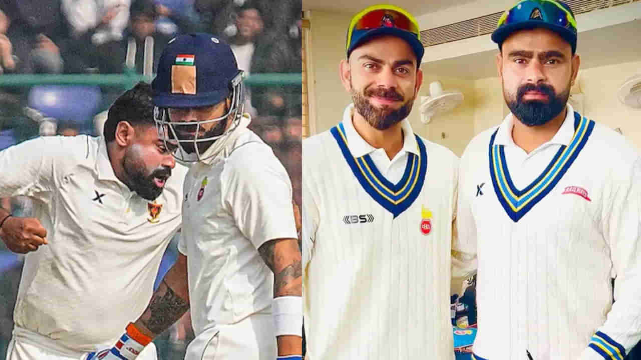 రంజీ ట్రోఫీ ఏడో రౌండ్లో ఢిల్లీ, రైల్వేస్ జట్ల మధ్య మ్యాచ్ జరిగింది. ఈ మ్యాచ్లో ఢిల్లీ జట్టు విజయం సాధించింది. ఈ మ్యాచ్లో విరాట్ కోహ్లీ కూడా ఢిల్లీ తరఫున బరిలోకి దిగాడు. సరిగ్గా 12 ఏళ్ల తర్వాత కోహ్లీ రంజీ మ్యాచ్ ఆడడం గమనార్హం. అయితే రంజీల్లోనూ విరాట్ పేలవ ప్రదర్శన కొనసాగింది. ఈ మ్యాచ్లో కోహ్లీకి ఒక్క ఇన్నింగ్స్లో మాత్రమే బ్యాటింగ్ చేసే అవకాశం లభించింది. ఆ ఇన్నింగ్స్లోనూ కోహ్లి 6 పరుగులు మాత్రమే చేసి ఔటయ్యాడు. రైల్వేస్ ఫాస్ట్ బౌలర్ హిమాన్షు సాంగ్వాన్ చేతిలో కోహ్లీ క్లీన్ బౌల్డ్ అయ్యాడు. లక్షలాది అభిమానుల ముందు ది గోట్ ను క్లీన్ బౌల్డ్ చేసిన సాంగ్వాన్ ఉద్వేగానికి లోనయ్యాడు. గట్టిగా అరుస్తూ సంబరాలు చేసుకున్నాడు. ఇది కోహ్లీ అభిమానులకు కోపం తెచ్చింది. సోషల్ మీడియాలోనూ సాంగ్వాన ను ట్రోల్ చేశారు. కానీ ఇక్కడే కింగ్ కోహ్లీ అందరి మనసులు గెల్చుకున్నాడు. మ్యాచ్ ముగిసిన తర్వాత హిమాన్షుకు ఓ స్పెషల్ గిఫ్ట్ ఇచ్చాడు కోహ్లీ. ఇప్పుడు ఇందుకు సంబంధించిన వీడియో నెట్టింట వైరల్గా మారింది.