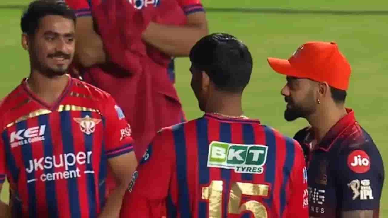 బుధవారం రాత్రి లక్నో సూపర్ జెయింట్స్పై ఆర్సీబీ 5 వికెట్ల తేడాతో ఘన విజయం సాధించింది. ఈ గెలుపుతో ఆర్సీబీ పాయింట్ల పట్టికలో అగ్రస్థానానికి చేరుకుంది. మ్యాచ్ ముగిసిన తర్వాత రెండు జట్ల ఆటగాళ్లు పరస్పరం పలకరించుకుంటున్న సమయంలో, లక్నో యువ బౌలర్ నమన్ తివారీ, ముకుల్ చౌదరి విరాట్ కోహ్లీతో మాట్లాడుతున్నారు. ఆ సంభాషణ మధ్యలో నమన్ తివారీ అకస్మాత్తుగా కోహ్లీ పాదాలను తాకేందుకు కిందకు వంగాడు. ఇది చూసి ఆశ్చర్యపోయిన కోహ్లీ, వెంటనే నమన్ను వారించి పైకి లేపి నవ్వుతూ అభినందించాడు. ఈ వీడియో ఇప్పుడు ఇంటర్నెట్లో విపరీతంగా షేర్ అవుతోంది.