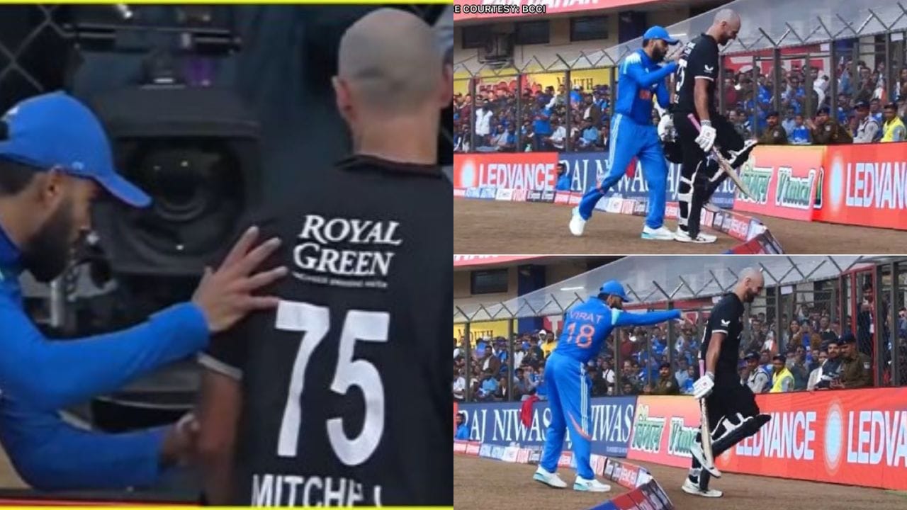 మిచెల్ పెవిలియన్ వైపు వెళ్తుండగా, బౌండరీ లైన్ వద్ద ఉన్న విరాట్ కోహ్లీ చప్పట్లు కొడుతూ అతన్ని అభినందించాడు. అయితే అక్కడితో ఆగకుండా, మిచెల్ దగ్గరకు వెళ్లి నవ్వుతూ అతన్ని వెనుక నుంచి నెడుతూ “ఇక చాలు వెళ్ళు” అన్నట్లుగా మైదానం బయటకు పంపించాడు. భారత్ను ఇంతసేపు ఇబ్బంది పెట్టినందుకు సరదాగా కోహ్లీ చేసిన ఈ పని కెమెరాకు చిక్కింది.