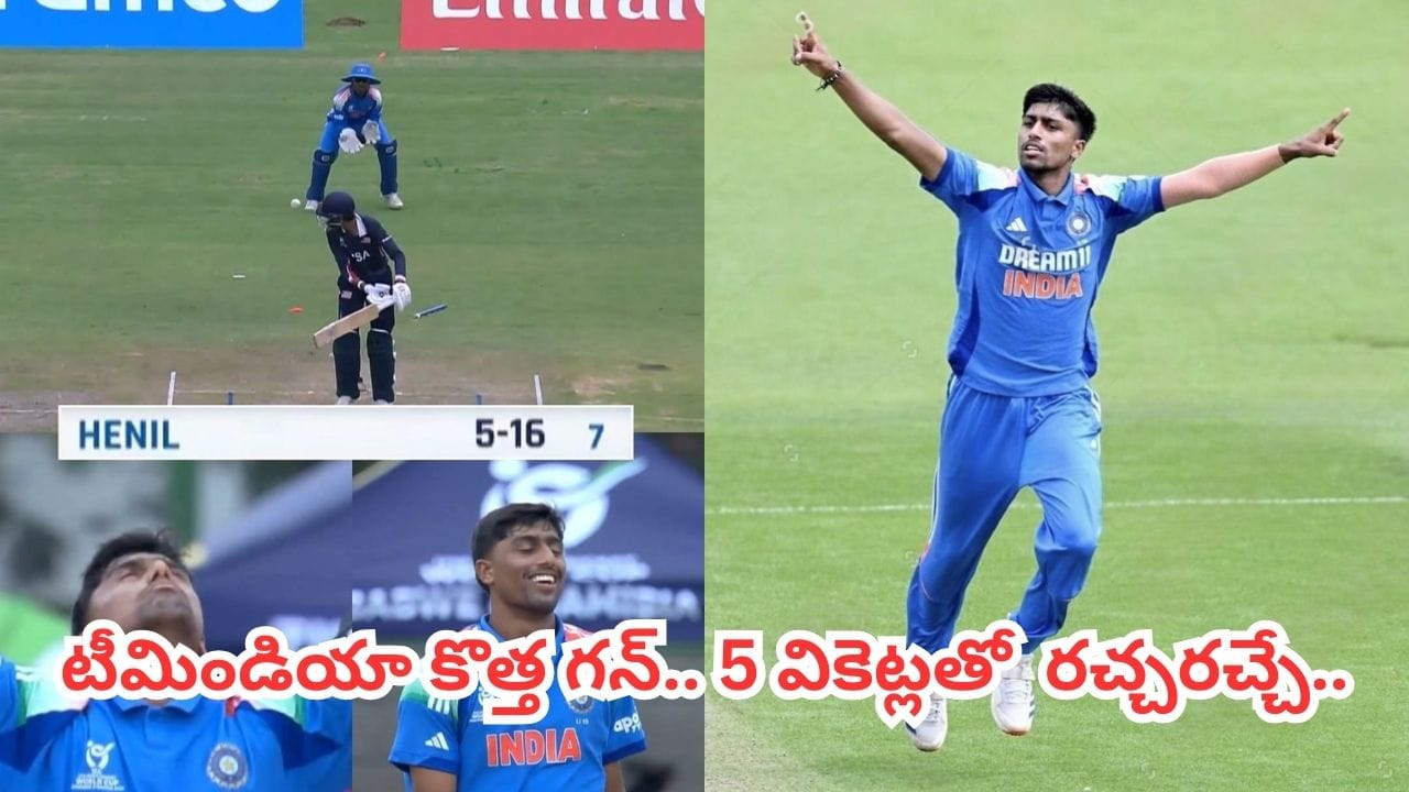 United States of America U19 vs India U19: జింబాబ్వే వేదికగా ప్రారంభమైన ఐసీసీ అండర్-19 ప్రపంచకప్ 2026లో భారత జట్టు శుభారంభం చేసింది. గ్రూప్-ఏలో భాగంగా గురువారం (జనవరి 15, 2026) అమెరికాతో జరిగిన తొలి మ్యాచ్లో భారత యువ బౌలర్ హెనిల్ పటేల్ (Henil Patel) తన ప్రతాపాన్ని చూపించాడు. కేవలం 16 పరుగులు మాత్రమే ఇచ్చి 5 వికెట్లు పడగొట్టి అమెరికా బ్యాటింగ్ వెన్నెముకను విరిచాడు.