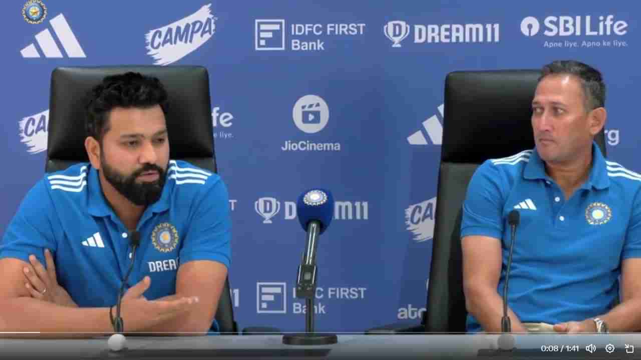 రోహిత్ శర్మ చేసిన ఈ సంజ్ఞ చూసి విలేకరులు నవ్వడం మొదలుపెట్టారు. అలాంటి పరిస్థితుల్లో ఈ మీడియా సమావేశానికి సంబంధించిన వీడియో ఇప్పుడు వైరల్ అవుతోంది. ఇక రోహిత్ శర్మ టీమిండియా స్పిన్నర్ల గురించి మాట్లాడాడు. 3-4 స్పిన్నర్లను కోరుకున్నది నేనే అని రోహిత్ చెప్పాడు. ఇందులో ప్రపంచకప్నకు ముగ్గురు పేసర్లు కావాలనుకున్నాను. రోహిత్ శర్మ వాషింగ్టన్ సుందర్ గురించి కూడా మాట్లాడాడు. సుందర్ పెద్దగా క్రికెట్ ఆడడం లేదు. కాబట్టి జట్టుకు అశ్విన్ను ఎంపిక చేశారు. కానీ, అక్షర్ పటేల్ అద్భుతమైన ఆటతీరుతో ఎట్టకేలకు జట్టులోకి వచ్చాడు.