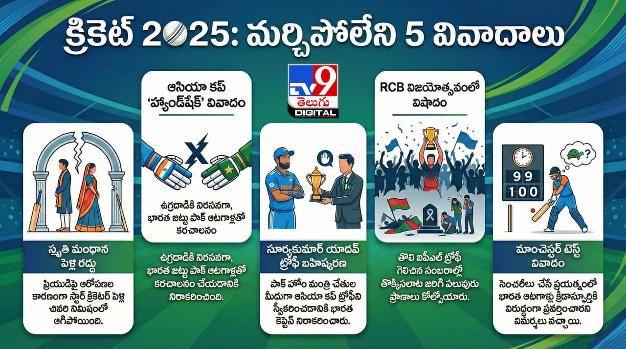 Cricket Controversies 2025: ఈ ఏడాది క్రీడా ప్రపంచంలో ముఖ్యంగా క్రికెట్తోపాటు ఆటగాళ్ల చుట్టూ వివాదాలు చెలరేగాయి. అయితే, కొన్ని వివాదాలు అందరి దృష్టిని ఆకర్షించాయి. ఆసియా కప్ నుంచి మంధాన పెళ్లి వరకు 2025లో జరిగిన ఐదు అతిపెద్ద క్రికెట్ వివాదాలను ఓసారి చూద్దాం.