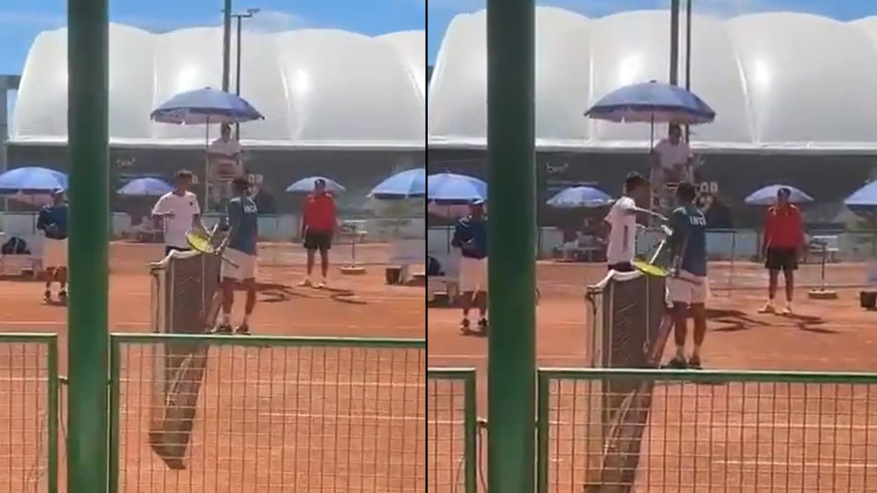 Junior Davis Cup: క్రీడలలో స్పోర్టివ్నెస్ (క్రీడాస్ఫూర్తి) అత్యంత ముఖ్యం. కానీ, కొన్నిసార్లు ఆటగాళ్లు హద్దులు దాటి ప్రవర్తిస్తుంటారు. తాజాగా ఇలాంటి ఘటనే జూనియర్ డేవిస్ కప్ (అండర్-16) టెన్నిస్ టోర్నమెంట్లో చోటుచేసుకుంది. భారత్-పాకిస్థాన్ మధ్య జరిగిన మ్యాచ్ అనంతరం పాకిస్థాన్ ఆటగాడు, భారత ఆటగాడి పట్ల ప్రదర్శించిన తీరు తీవ్ర విమర్శలకు దారితీసింది. కజకిస్థాన్లో జరిగిన ఈ టెన్నిస్ టోర్నమెంట్లో పాకిస్తాన్ ఆటగాడి ప్రస్టేషన్ కనిపించింది. సూపర్ టై-బ్రేక్ సింగిల్స్ మ్యాచ్లలో భాగంగా భారత ఆటగాళ్లు ప్రకాశ్ శరణ్, తన్విష్ పహ్వాలు ఘన విజయం సాధించారు. ఈ క్రమంలో పాక్ ఆటగాడు దురుసు ప్రవర్తనతో క్రీడా స్ఫూర్తికి విఘాతం కలిగించాడు. ఇందుకు సంబంధించిన ఓ వీడియో వైరల్గా మారింది.
