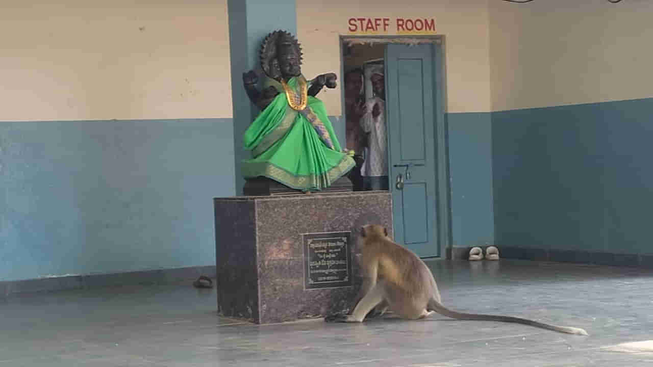 ఓ కొండముచ్చు ప్రతిరోజు ఆ పాఠశాలకు వచ్చి ఆవరణలో ఉన్న సరస్వతి అమ్మవారి విగ్రహం ముందు ధ్యానం చేయడం అందరి దృష్టిని ఆకర్షిస్తోంది. ఆ కొండముచ్చు ఎవరిని ఏమనకుండా గంటపాటు సరస్వతి అమ్మవారి ముందు ధ్యానం చేసుకొని వచ్చిన దారినే వెళ్లిపోతుంది.. ఈ విచిత్ర సంఘటన అందర్నీ అయోమయానికి గురిచేస్తోంది.
