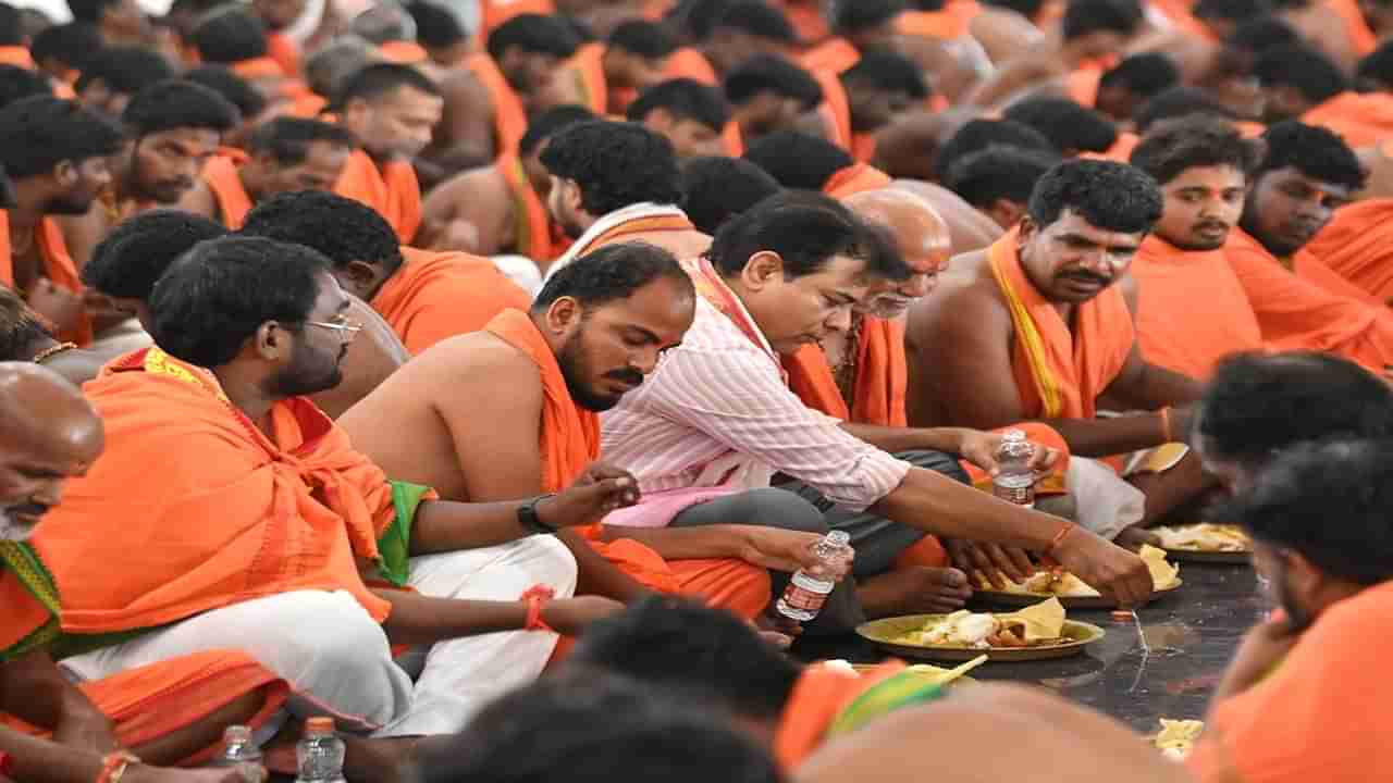 వ్యక్తిగత నమ్మకాలు వేరు.. ప్రజా సమూహంలో.. అందులోనూ, రాజకీయాల్లో ఉన్నప్పుడు ప్రజల విశ్వాసాలను గుర్తించడం వేరు. దేవుడిని నమ్మడం నమ్మకపోవడం.. విపరీతంగా పూజించడం.. దాన్నే చర్చకు పెట్టడం ఇవన్నీ ఇవాళ రాజకీయాల్లో భాగమైపోయాయి. తాజాగా రాజన్న సిరిసిల్ల జిల్లాలో బీఆర్ఎస్ వర్కింగ్ ప్రెసిడెంట్ కేటీఆర్ పలు ఆధ్యాత్మిక కార్యక్రమాలకు హాజరయ్యారు. హనుమాన్ దీక్షాపరులతో కలిసి భిక్షలో పాల్గొని వారితో సహపంక్తి భోజనం చేశారు.