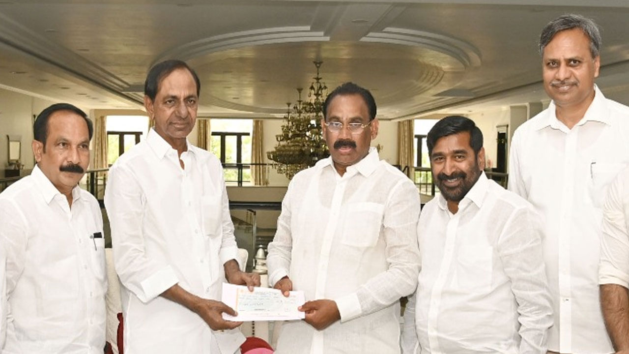 Munugode Bypoll: కూసుకుంట్ల ప్రభాకర్ రెడ్డికి TRS బీ ఫామ్.. రూ.40 లక్షల చెక్ అందజేసిన CM KCR….
