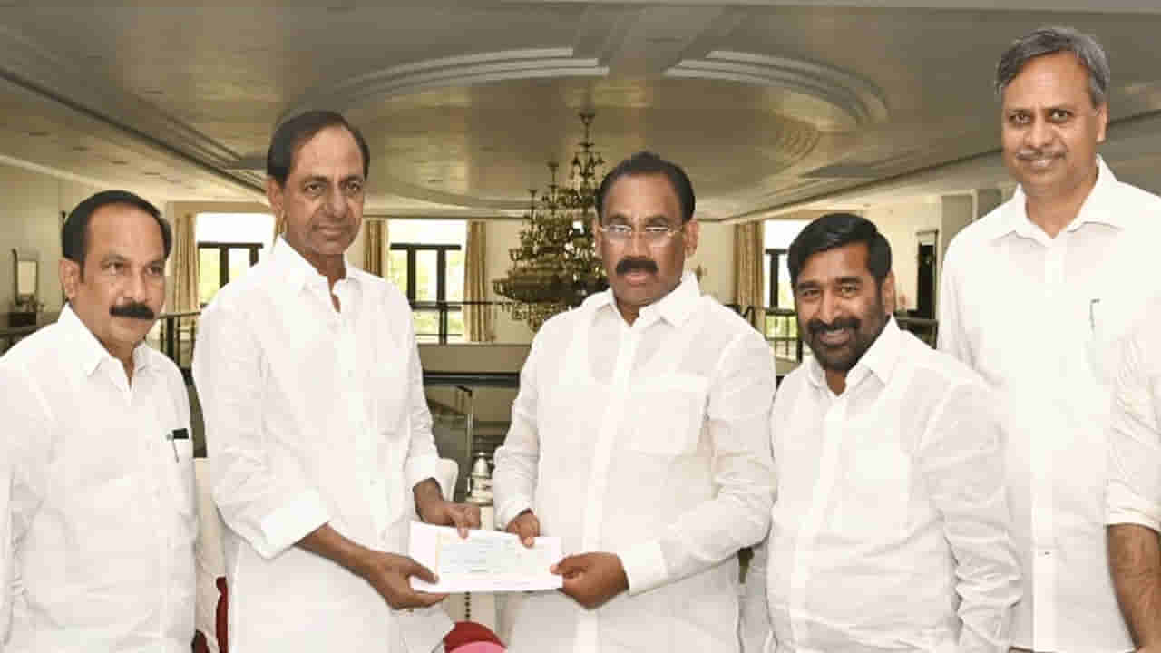 మునుగోడు ఉప ఎన్నికలో టీఆర్ఎస్ పార్టీ అభ్యర్థిగా పోటీ చేయనున్న కూసుకుంట్ల ప్రభాకర్ రెడ్డికి.. ముఖ్యమంత్రి కే చంద్రశేఖర్ రావు.. పార్టీ బీ ఫామ్ ను అందజేశారు. అభ్యర్థి ప్రకటన అనంతరం కూసుకుంట్ల ప్రభాకర్ రెడ్డి.. శుక్రవారం ప్రగతి భవన్లో సీఎం కేసీఆర్ను మర్యాద పూర్వకంగా కలిశారు. ఈ సందర్భంగా కేసీఆర్ బీఫాంను అందచేసారు. ఎన్నికల ఖర్చు నిమిత్తం పార్టీ నిధినుంచి రూ.40 లక్షల చెక్కును అందచేశారు. తనకు అభ్యర్థిగా అవకాశమిచ్చినందుకు సీఎం కెసిఆర్ కు కూసుకుంట్ల ఈ సందర్భంగా కృతజ్జతలు తెలిపారు. ఈ సందర్భంగా సీఎం కేసీఆర్ పలు సూచనలు సైతం చేశారు. పార్టీ గెలుపునకు తీసుకోవాల్సిన చర్యలు, పలు అంశాల గురించి మాట్లాడారు. ఈ కార్యక్రమంలో నల్గగొండ జిల్లా మంత్రి జగదీశ్ రెడ్డి, ఎమ్మెల్సీలు తక్కెళ్లపల్లి రవీందర్ రావు, పల్లా రాజేశ్వర్ రెడ్డి, ఎమ్మెల్యే జీవన్ రెడ్డి, గువ్వల బాలరాజు,మాజీ ఎమ్మెల్సీ శ్రీనివాస రెడ్డి తదితరులున్నారు.