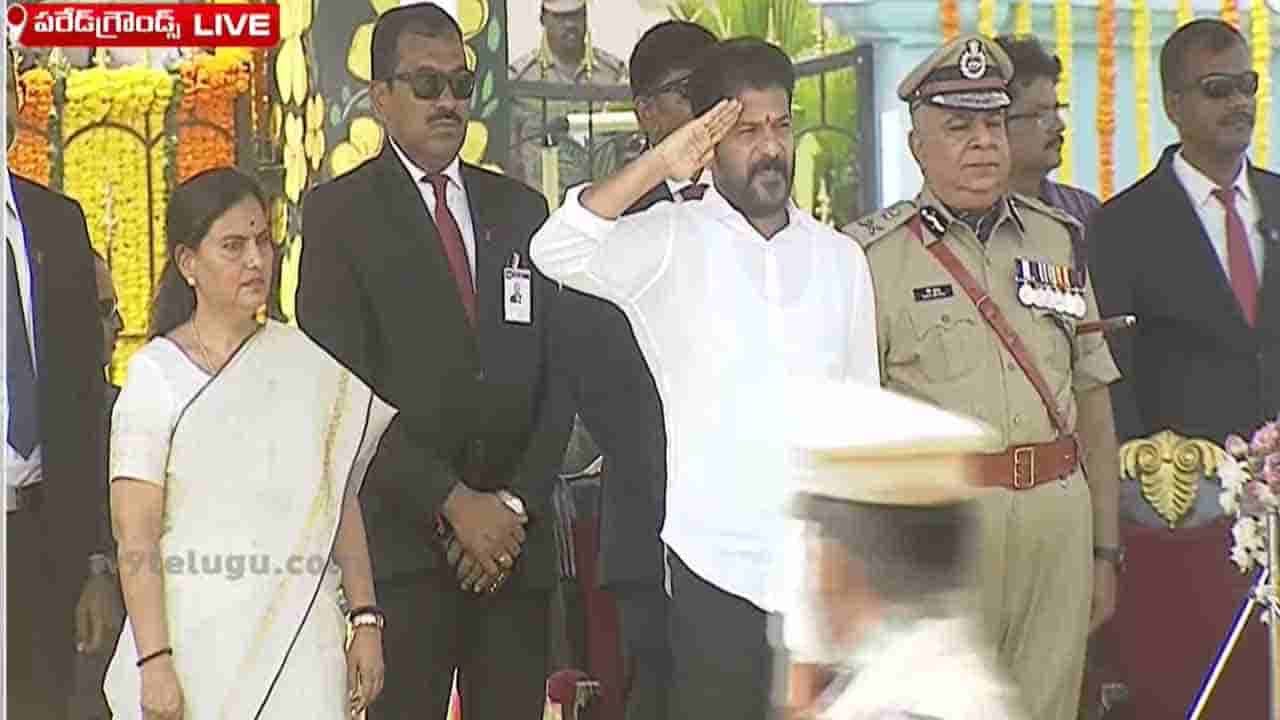 తెలంగాణ రాష్ట్రం ఏర్పడి పదేళ్లైనా ఇప్పటి వరకు రాష్ట్ర గేయం లేదన్న సీఎం రేవంత్ రెడ్డి.. జయ జయహే తెలంగాణ గీతాన్ని రాష్ట్ర గీతంగా అధికారికంగా ప్రకటించారు. ప్రేమను పంచడం, పెత్తనాన్ని ప్రశ్నించడం రాష్ట్ర ప్రజల తత్వవమని చెప్పారు. సంక్షేమం ముసుగులో చెరబట్టాలని చూస్తే ఇక్కడి సమాజం సహించదన్నారు. కాంగ్రెస్ పాలనలో పాలకులు, పాలితుల మధ్య గోడలు బద్దలు కొట్టామని స్పష్టం చేశారు. అంతకుముందు జాతీయ పతాకాన్ని సీఎం ఆవిష్కరించి పోలీసుల నుంచి గౌరవ వందనం స్వీకరించారు. అనంతరం రాష్ట్ర గీతం ‘జయ జయహే తెలంగాణ’ను సీఎం రేవంత్ విడుదల చేశారు.