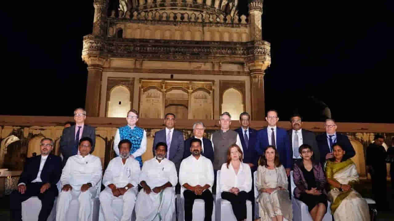హైదరాబాద్లోని కుతుబ్ షాహీ టూంబ్ వద్ద బుధవారం రాత్రి 13 దేశాల ప్రతినిధులకు ముఖ్యమంత్రి శ్రీ రేవంత్ రెడ్డి ఆతిథ్యం ఇచ్చారు. ఈ కార్యక్రమంలో ఉప ముఖ్యమంత్రి భట్టి విక్రమార్క మల్లు, మంత్రులు దామోదర రాజనర్సింహ, శ్రీధర్ బాబు, ప్రభుత్వ ప్రధాన కార్యదర్శి శాంతి కుమారి, జయేష్ రంజన్, హైదరాబాద్ రీజనల్ పాస్ పోర్ట్ ఆఫీసర్ స్నేహజ, ఇతర అధికారులు పాల్గొన్నారు. అమెరికా, ఇరాన్, తుర్కియే, యూఏఈ, యూకే, జపాన్, థాయిలాండ్, జర్మనీ, శ్రీలంక , బంగ్లాదేశ్, ఆస్ట్రేలియా, ఫ్రాన్స్, ఫిన్లాండ్ దేశాల ప్రతినిధులు హాజరు అయ్యారు. ఈ సందర్భంగా వారికి ముఖ్యమంత్రి రేవంత్ రెడ్డి స్వాగతం పలుకుతూ తమ ప్రభుత్వ ప్రాధాన్యతలను వివరించారు.