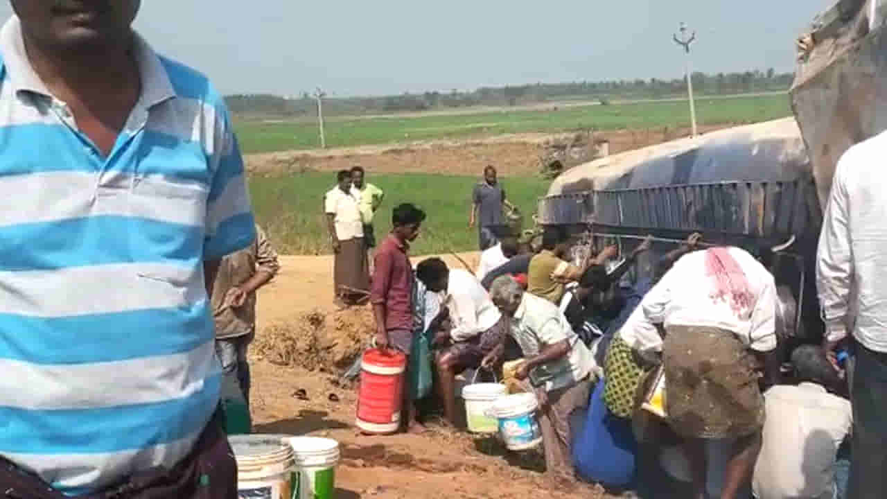 అరె.. వాహనం పడిపోయిందే.. సాయం చేద్దామని ఎవరికీ లేదు. తాము ఎత్తుకెళ్లడమే కాదు.. తెలిసినవాళ్లకు ఫోన్ చేసి కూడా సమాచారం ఇచ్చారు. దొరికినకాడికి నింపుకుని వెళ్లారు. ఆ ట్యాంకర్ డ్రైవర్ను ఒక్కరు కూడా పట్టించుకున్న పాపాన పోలేదు. చూశారుగా జనాలు ఎట్టా తయారయ్యారో… ఫ్రీగా వస్తే.. ఏదీ వదలరు అండోయ్.