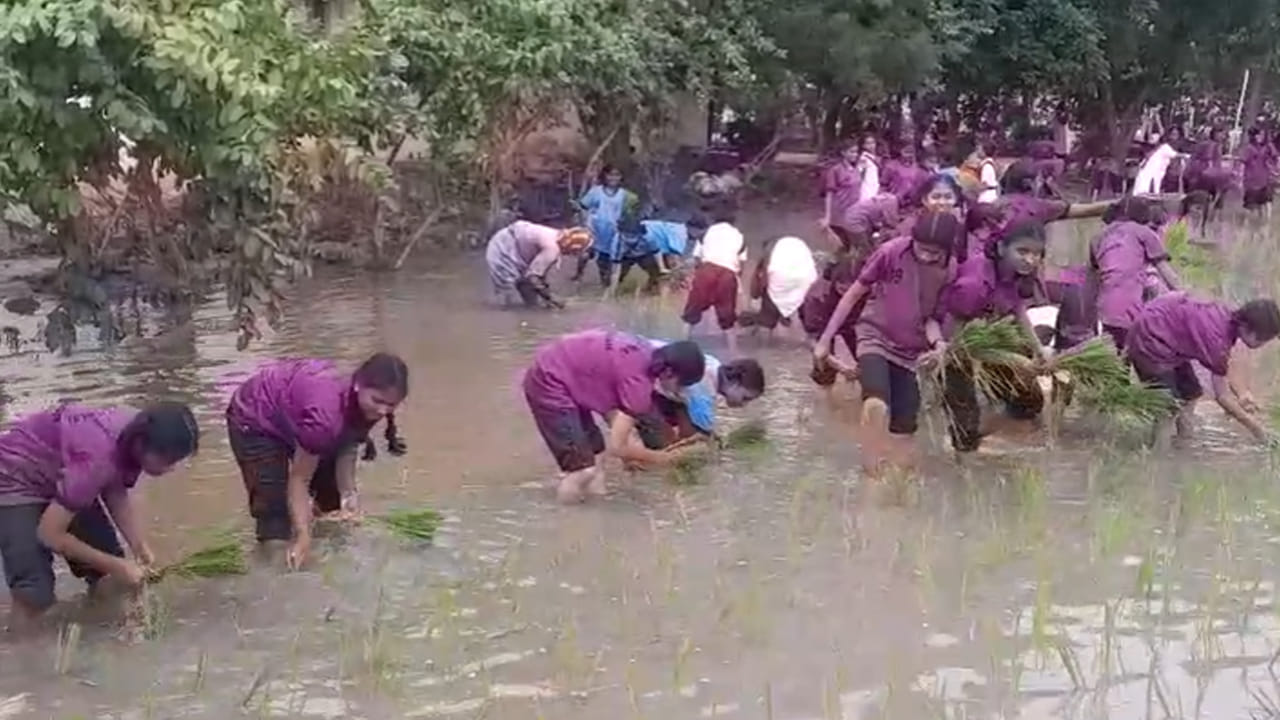 పాఠశాలకు చెందిన ఖాళీ స్థలంలో స్వయంగా వరి పంట సాగు చేసేందుకు విద్యార్థినులు ఉత్సాహంగా నాట్లు వేశారు. పదవ తరగతి, ఇంటర్ రెండవ సంవత్సరం చదువుతున్న బాలికలు రెండు బృందాలుగా ఏర్పడి పరస్పర సహకారంతో వ్యవసాయ పనుల్లో పాల్గొన్నారు. పాఠశాల ప్రాంగణంలోని 28 గుంటల ఖాళీ స్థలాన్ని ఇప్పటికే చదును చేసి, దుక్కులు దున్ని, నీటిని సరిగా పారించి, వరి నాట్లకు సిద్ధం చేశారు. జిల్లాలో మరెక్కడా లేని విధంగా ఈ బాలికలు ప్రతి ఏడూ కొత్త రకాల పంటలు పండిస్తూ ఇతర విద్యార్థులకు స్ఫూర్తిగా నిలుస్తున్నారు.