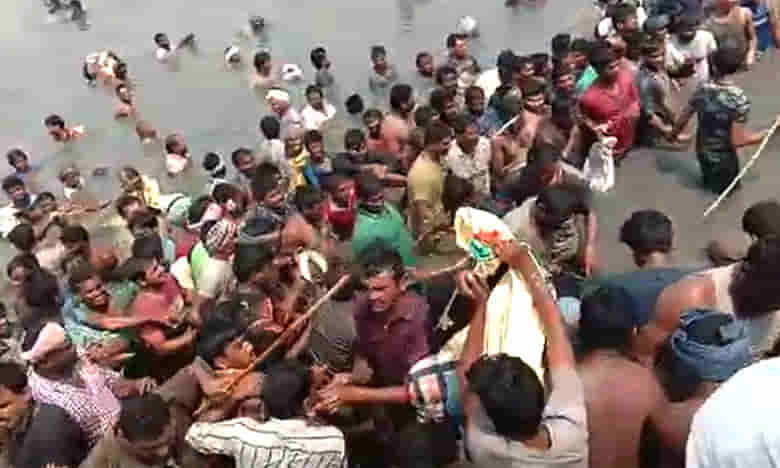 సూర్యాపేట జిల్లా మునగాల మండలం గణపవరం చేపల చెరువు వద్ద తీవ్ర ఉద్రిక్తత ఏర్పడింది. చుట్టుపక్కల పది గ్రామాల ప్రజలు చేపల కోసం ఒక్కసారిగా ఈ చెరువుపై పడ్డారు. చేపల కోసం ఇలా దండుగా దండయాత్ర చేశారు. దొరికినవారికి దొరికినంత మహదేవా అన్నట్టు దొరికినకాడికి చేపలను పట్టుకెళ్లారు. మార్కెట్లో చేపల ధర చుక్కలనంటుతున్న టైమ్లో గణపవరం చెరువులో ఫ్రీగా చేపలు తీసుకెళ్లొచ్చన్న ప్రచారం ఈ దుమారానికి దారి తీసింది.