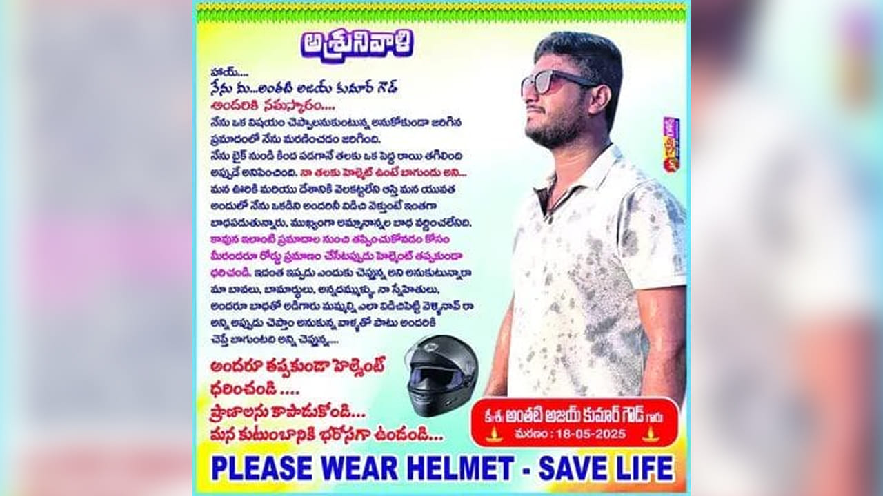 ‘నేను హెల్మెట్ ధరించి ఉంటే.. మీ అందరితో కలిసి ఉండేవాడిని..’ కంటతడి పెట్టిస్తున్న పోస్టర్!