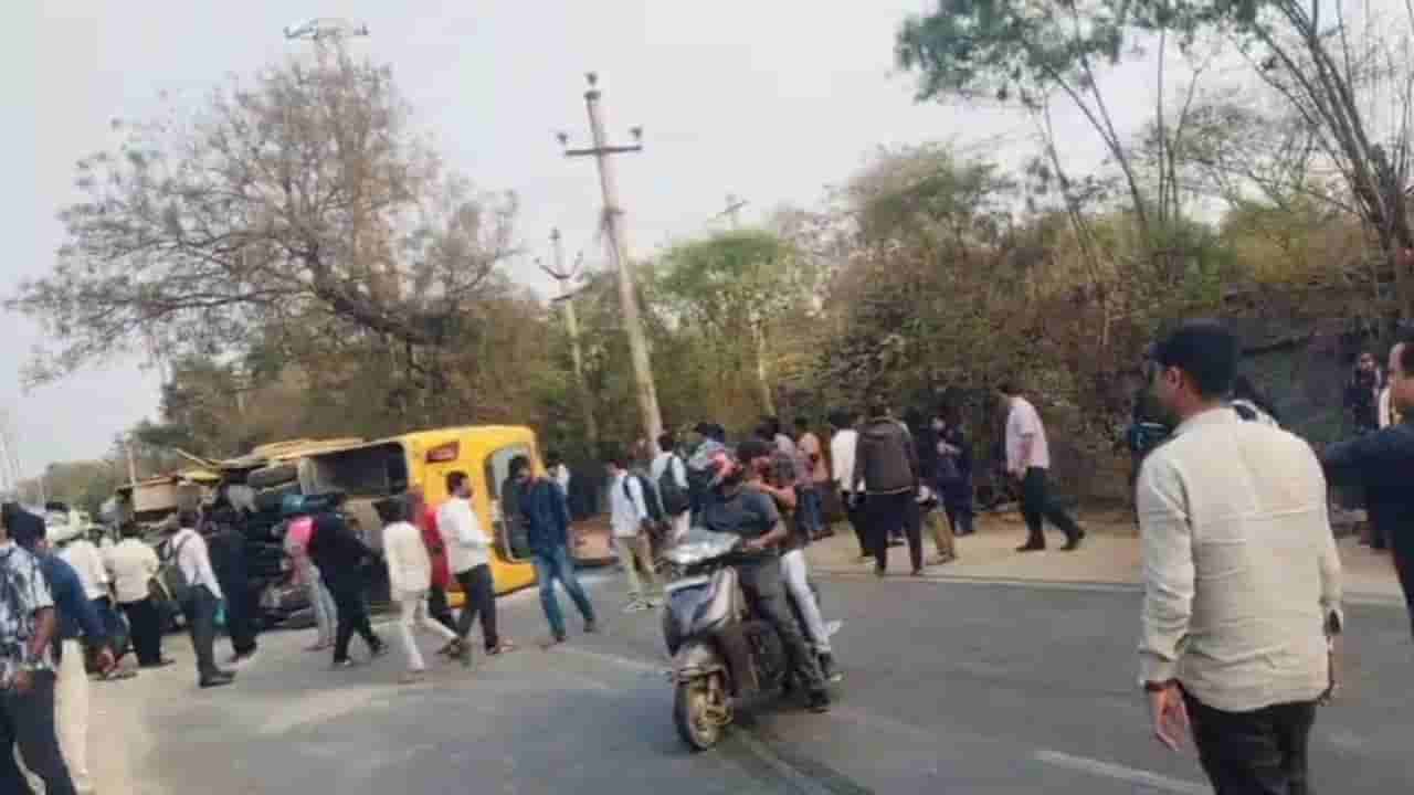 మొయినాబాద్ మృగవాణి పార్క్ సమీపంలో స్కూల్ బస్సు బోల్తా పడిన ఘటన బుధవారం తీవ్ర కలకలం రేపింది. బండ్లగూడలోని ఓ ప్రైవేట్ స్కూల్కు చెందిన బస్సు హైదరాబాద్ వైపు వస్తున్న సమయంలో అదుపుతప్పి బోల్తా పడింది. ఈ ప్రమాదంలో బస్సులో ఉన్న పలువురు విద్యార్థులకు గాయాలయ్యాయి. ప్రమాదం జరిగిన వెంటనే స్థానికులు, పోలీసులు ఘటన స్థలానికి చేరుకుని సహాయక చర్యలు చేపట్టారు. గాయపడిన విద్యార్థులను వెంటనే సమీప ఆసుపత్రికి తరలించి చికిత్స అందించారు. ప్రమాదానికి గల కారణాలపై పోలీసులు దర్యాప్తు ప్రారంభించారు. బస్సులో ఉన్న విద్యార్థుల సంఖ్య, గాయాల తీవ్రతపై మరింత సమాచారం రావాల్సి ఉంది.