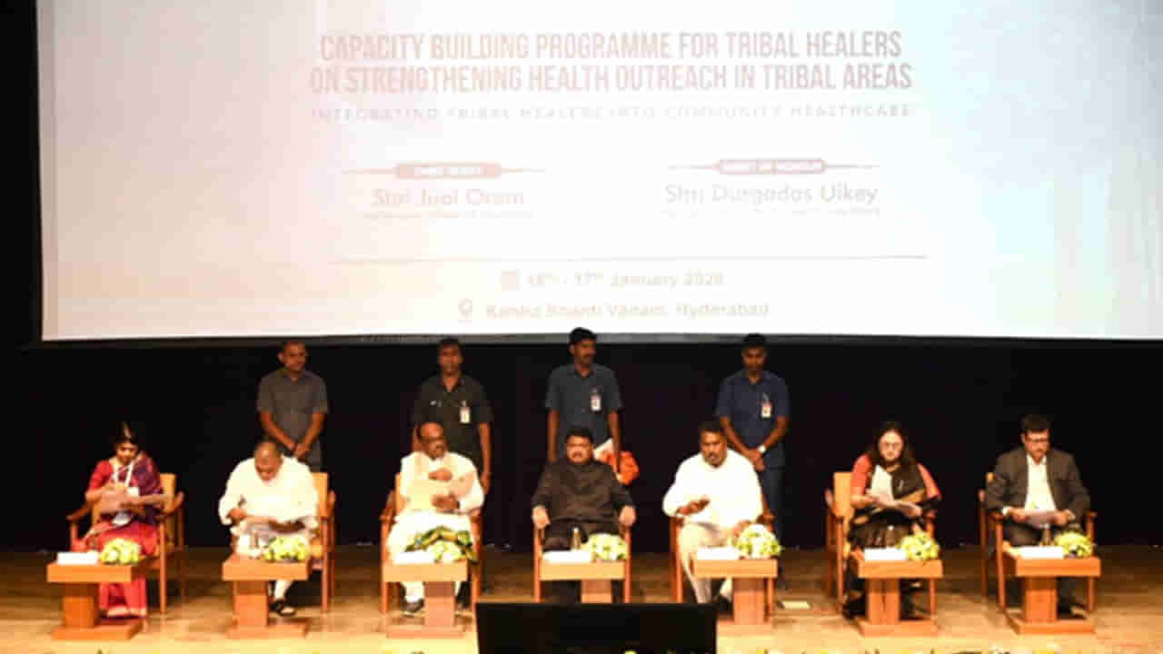 గిరిజన ప్రాంతాల్లో ఆరోగ్య సేవలను మరింత ప్రభావవంతంగా అందించేందుకు కేంద్ర ప్రభుత్వం కీలక ముందడుగు వేసింది. గిరిజన సంప్రదాయ వైద్యులను ప్రజారోగ్య వ్యవస్థలో భాగస్వాములుగా గుర్తిస్తూ కేంద్ర గిరిజన వ్యవహారాల మంత్రిత్వ శాఖ ఆధ్వర్యంలో జాతీయ స్థాయి సామర్థ్యవృద్ధి కార్యక్రమాన్ని హైదరాబాద్లోని కన్హా శాంతివనంలో ప్రారంభించింది. ఈ కార్యక్రమం దేశంలోనే తొలిసారిగా గిరిజన వైద్యులను అధికారికంగా ప్రజారోగ్య వ్యవస్థతో అనుసంధానించే జాతీయ ప్రయత్నంగా నిలుస్తోంది. చివరి మైలు వరకు ఆరోగ్య సేవలు చేరేలా సమాజ ఆధారిత, సమగ్ర అభివృద్ధి లక్ష్యంగా ఈ కార్యక్రమం రూపొందించబడిందని కేంద్రం తెలిపింది. ఈ ప్రారంభ సభకు కేంద్ర గిరిజన వ్యవహారాల మంత్రి జువల్ ఓరాం, రాష్ట్ర మంత్రి దుర్గదాస్ ఉయికే, తెలంగాణ గిరిజన సంక్షేమ శాఖ మంత్రి అడ్లూరి లక్ష్మణ్ కుమార్, మహబూబాబాద్ ఎంపీ బలరాం నాయక్తో పాటు కేంద్ర–రాష్ట్ర ప్రభుత్వ ఉన్నతాధికారులు, AIIMS, ICMR, WHO వంటి ప్రతిష్ఠాత్మక సంస్థల ప్రతినిధులు హాజరయ్యారు. దేశవ్యాప్తంగా వచ్చిన సుమారు 400 మంది గిరిజన సంప్రదాయ వైద్యులు ఈ కార్యక్రమంలో పాల్గొన్నారు.
