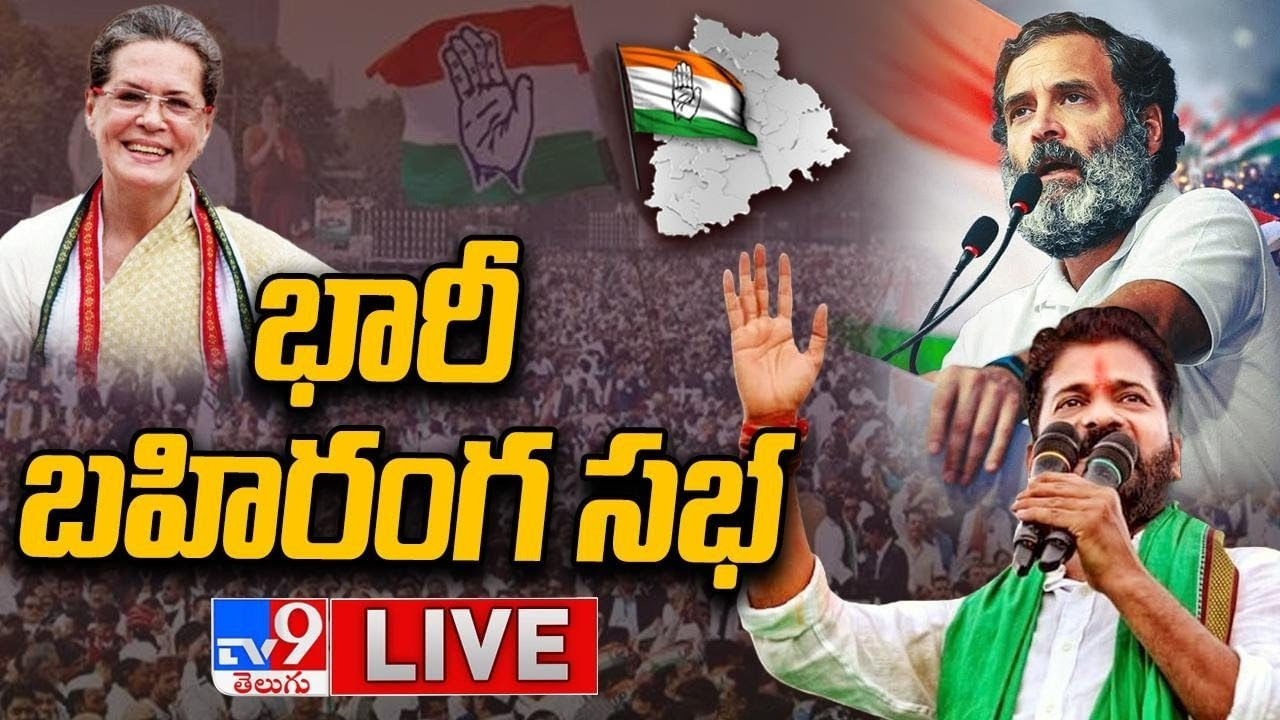 కాంగ్రెస్ ప్రతిష్ఠాత్మకంగా నిర్వహిస్తున్న విజయ భేరి సభను ఇక్కడ లైవ్ చూడండి. ఖర్గే, సోనియా, రాహుల్తో పాటు రాష్ట్ర నేతలందరూ ఈ కార్యక్రమంలో పాల్గొంటున్నారు.