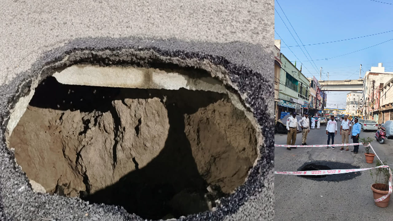 న్యూ మలక్పేట్ రోడ్డు, లాల్జార్ హోటల్ వద్ద మట్టి పూడ్చిన రోడ్డు కుంగి భారీ గుంత ఏర్పడింది. ట్రాక్టర్ వెళ్తున్నప్పుడు ప్యాచ్ కూలి వాక్యూమ్ లాంటి గుంత, నీటి పైపు లీకేజీ కనిపించాయి. పోలీసులు వెంటనే బ్యారికేడ్లు ఏర్పాటు చేసి పెద్ద ప్రమాదాన్ని తప్పించారు. AIMIM ఎమ్మెల్యే అహ్మద్ బలాలా తక్షణ చర్యలు, మరమ్మతులకు ఆదేశించారు. ప్రజలకు ఇబ్బందులు లేకుండా సంబంధిత శాఖలు వెంటనే చర్యలు చేపట్టాలని కోరుతున్నారు.
