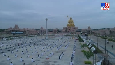 International Yoga Day 2022: ముచ్చింతల్ శ్రీరామ నగరములో సమతా మూర్తి స్ఫూర్తి కేంద్రం లో శ్రీశ్రీశ్రీ త్రిదండి చిన్న జీయర్ స్వామి ఆధ్వర్యంలో ప్రపంచ యోగా దినోత్సవ వేడుకలు ఘనంగా నిర్వహించారు. ఈ వేడుకలను చిన్న జీయర్ అందుల పాఠశాల విద్యార్థులు వేద పాఠశాల విద్యార్థులు, ఆయుర్వేద కాలేజ్ విద్యార్థులు, సిబ్బంది అలాగే వికాస తరంగిణి సభ్యులు దాదాపుగా రెండు వేల మందితో శ్రీశ్రీశ్రీ రామానుజుల విగ్రహం ముందు ఘనంగా నిర్వహించారు.