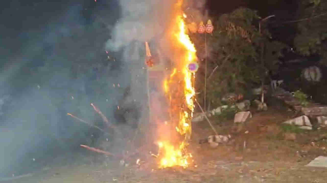 హైదరాబాద్ పాతబస్తీ ఫలక్నుమాలో దసరా వేడుకలు అంగరంగ వైభవంగా నిర్వహించారు. ఫలక్నుమా మల్లికార్జున దేవాలయంలో విజయదశమి సందర్భంగా జరిగిన రావణ దహన కార్యక్రమం ప్రత్యేక ఆకర్షణగా నిలిచింది. వేల సంఖ్యలో భక్తులు ఈ కార్యక్రమంలో పాల్గొన్నారు. రాత్రి వేళ ఆకాశాన్ని అలరించిన పటాకుల కాంతుల మధ్య, రావణ వధను ప్రతిబింబించే విధంగా ప్రతిమను దహనం చేశారు. భక్తులు, స్థానికులు పెద్ద సంఖ్యలో తరలి వచ్చి ఈ అద్భుత దృశ్యాన్ని వీక్షించారు.